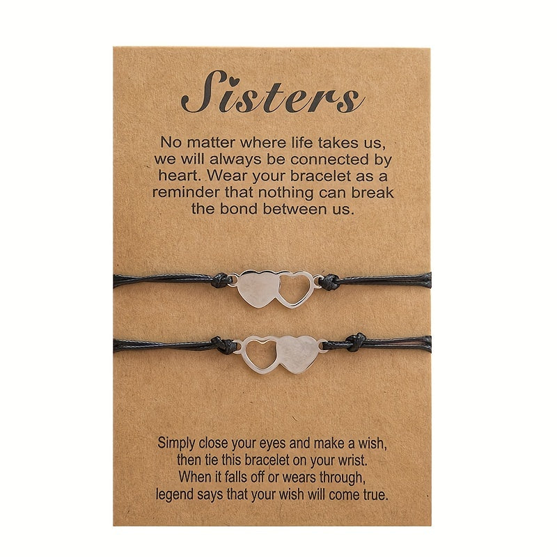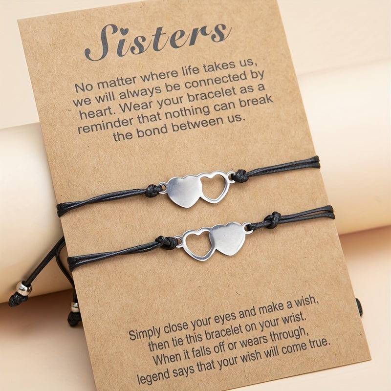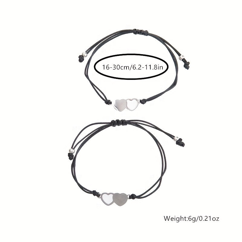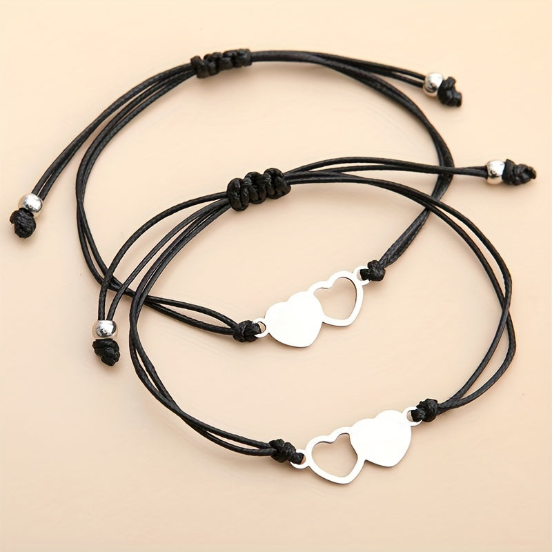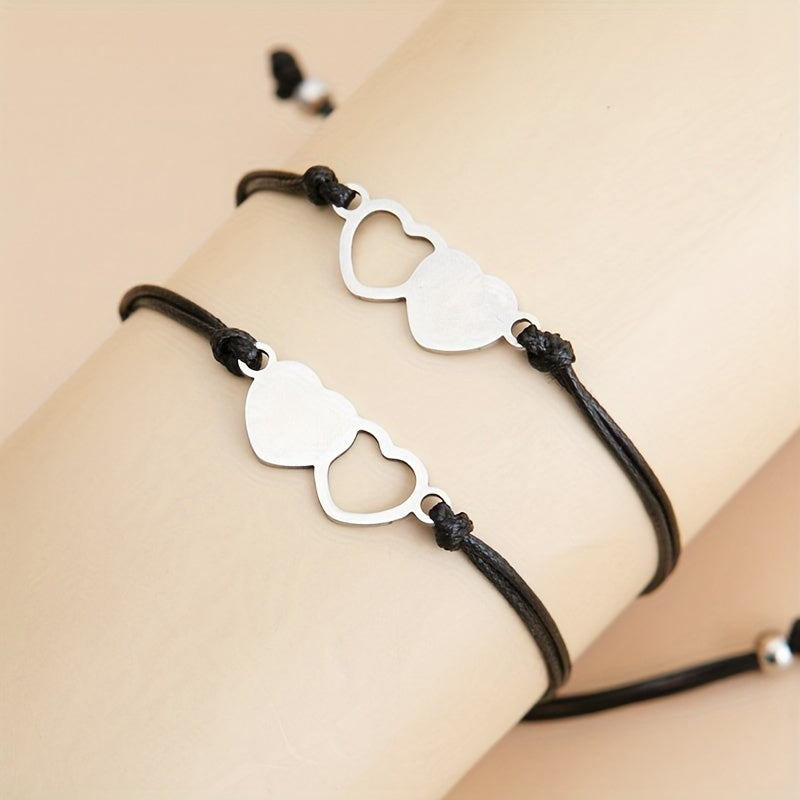 This set of bracelets is perfect for sharing with a friend. The stainless steel heart design adds a touch of elegance to your hand decoration.