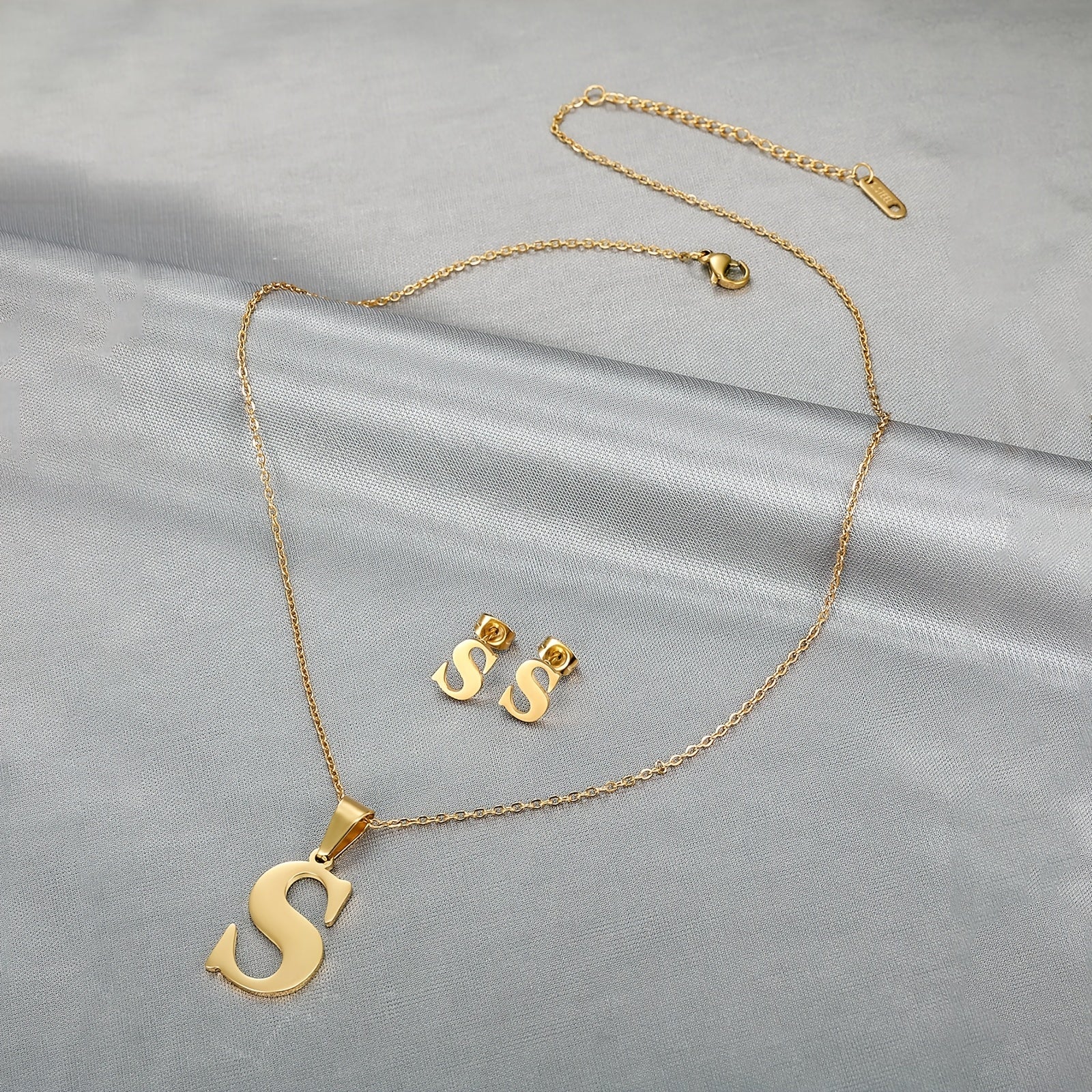 This stunning stainless steel jewelry set includes a pendant necklace and stud earrings. It is the perfect minimalist jewelry set gift for women and girls.