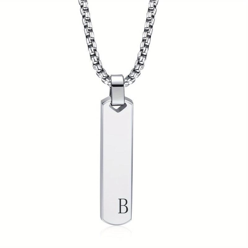This necklace pendant is crafted from stainless steel and features a laser-etched 3D design of the 26 letters. The polished finish adds a stylish touch to any outfit.