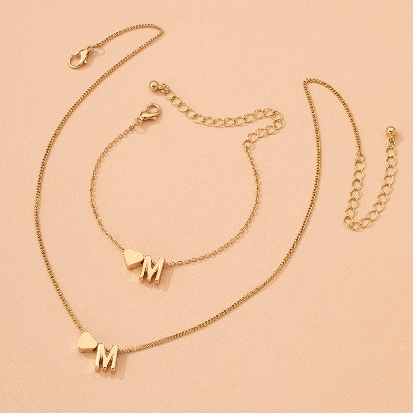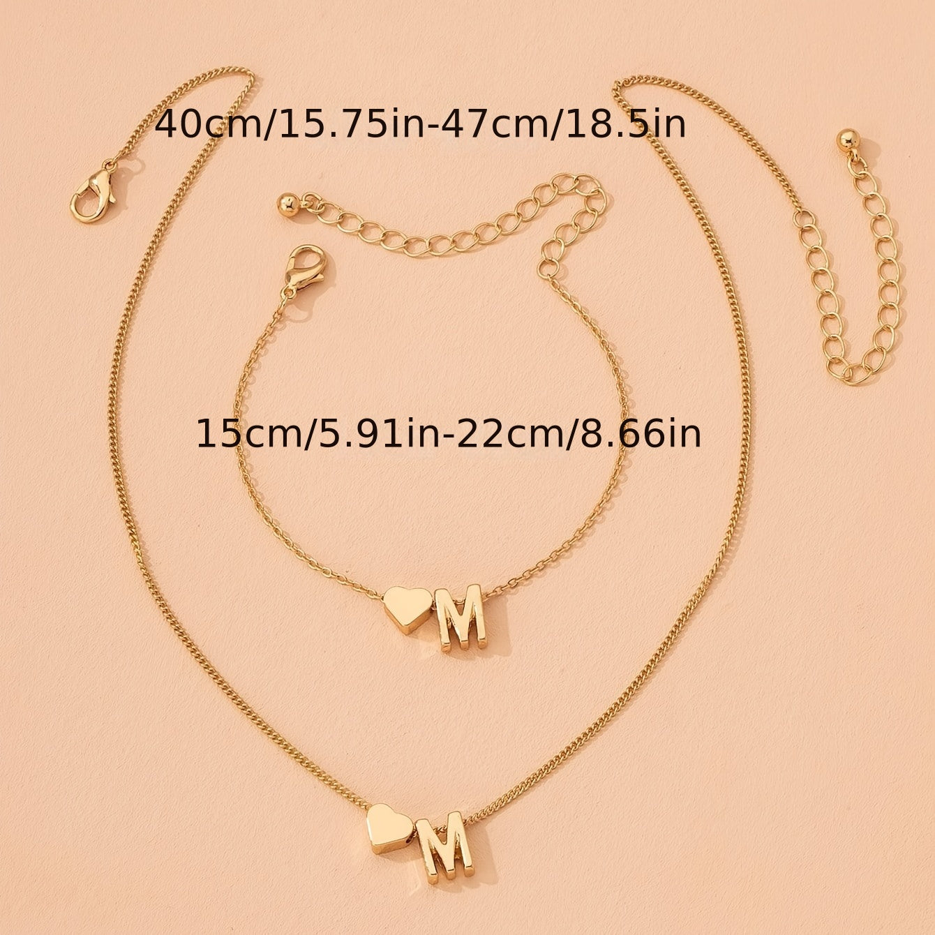Adorn yourself with this lovely jewelry set featuring a tiny letter pendant necklace and chain bracelet with heart shape pendant. Made of high-quality stainless steel, these pieces are durable and stylish.