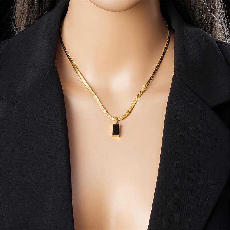 This stainless steel necklace features a square pendant, making it a versatile accessory for daily wear, parties, dates, and formal events. Perfect for date night and party outfits.