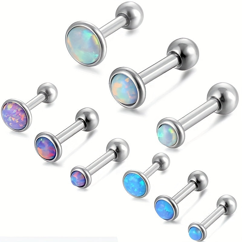 Elevate your daily wear with these stainless steel opal stud earrings designed in a hip hop minimalist style. Perfect for daily casual looks.