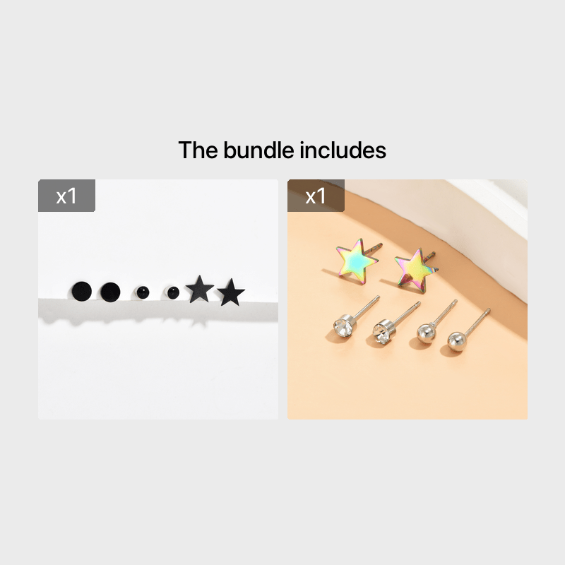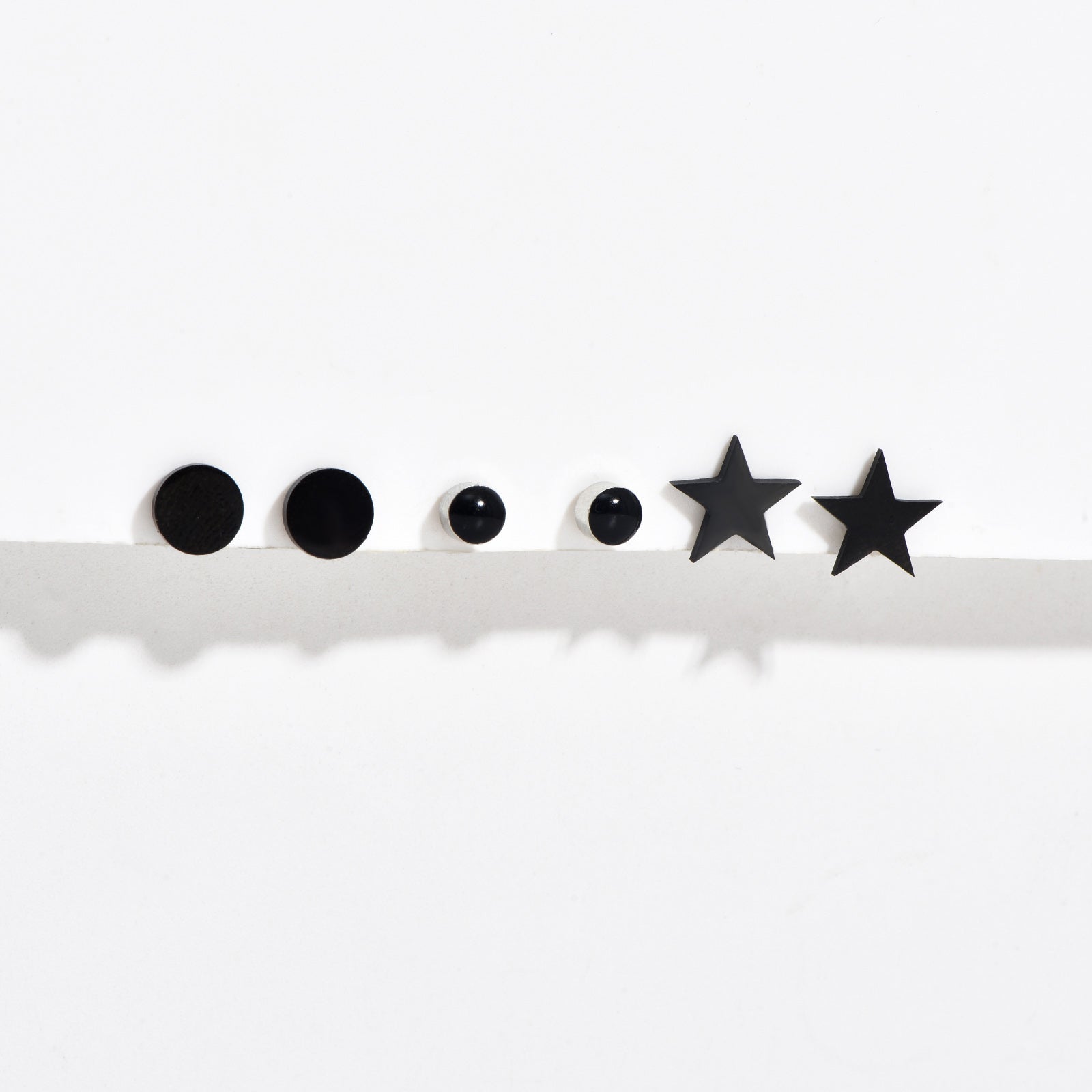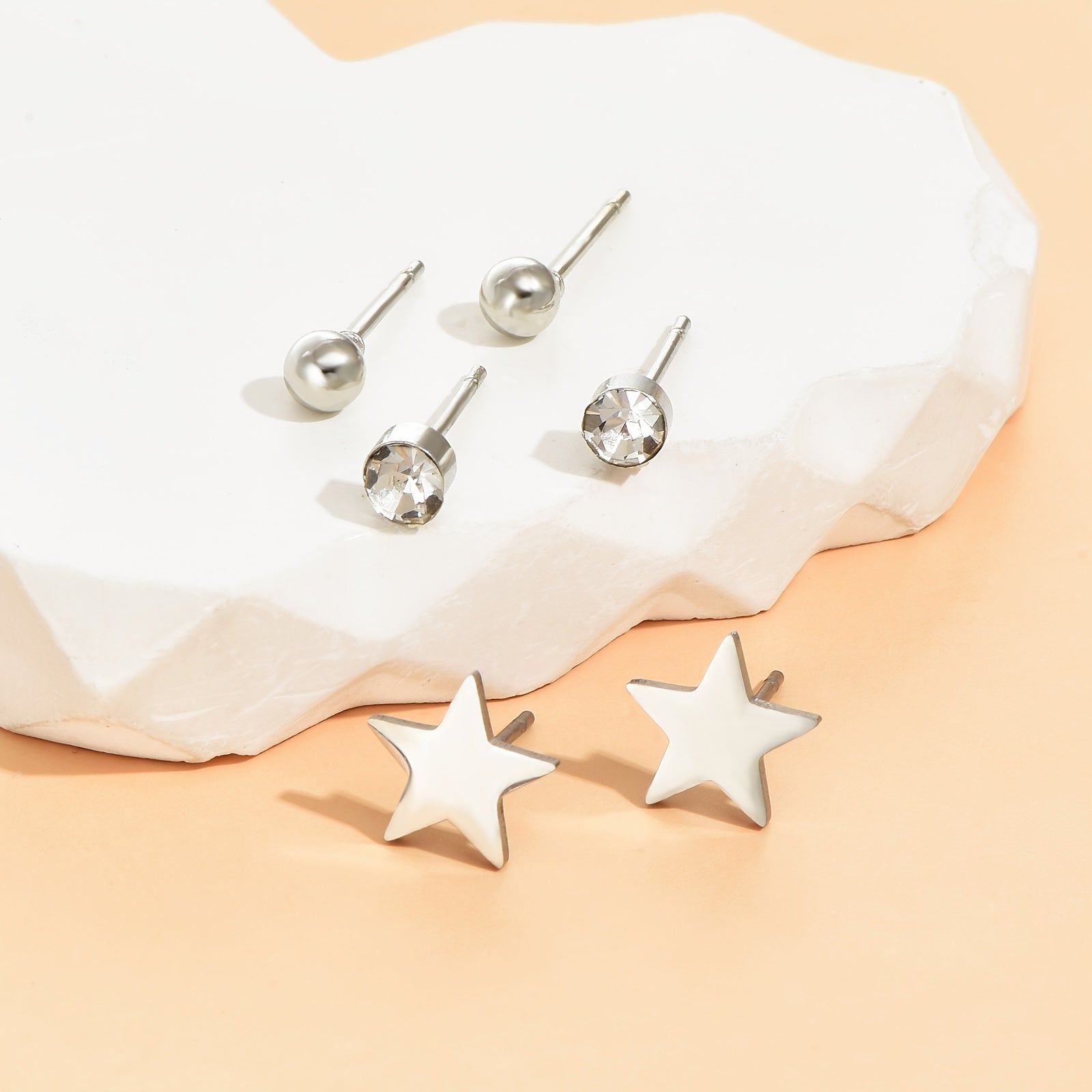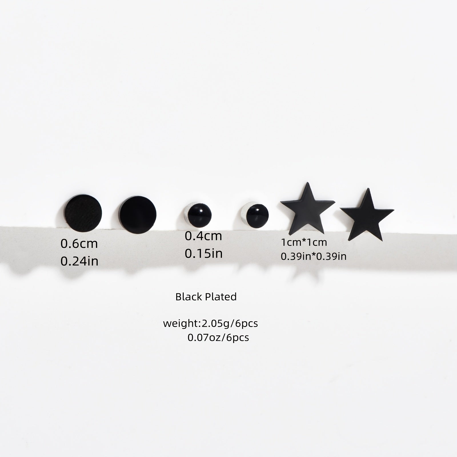 Add a touch of sparkle to your outfit with these stainless steel stud earrings featuring a colored point star design. Set includes 6 pairs to mix and match.