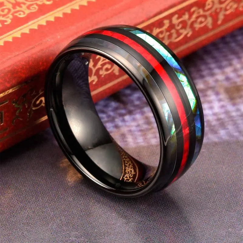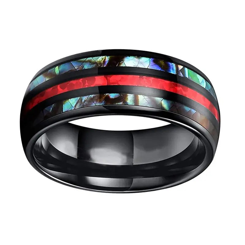 Add a touch of style to your everyday and party looks with this stainless steel ring featuring a striking red belt accent in the middle.