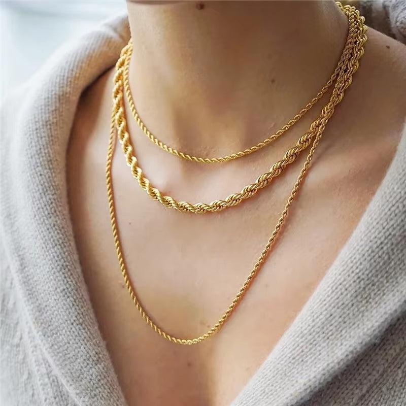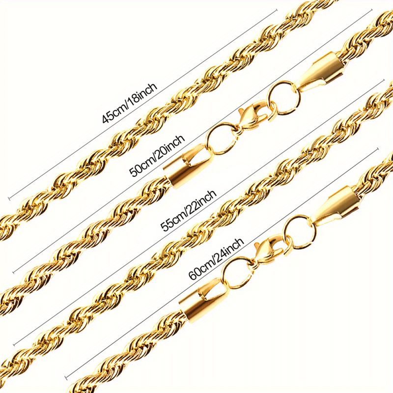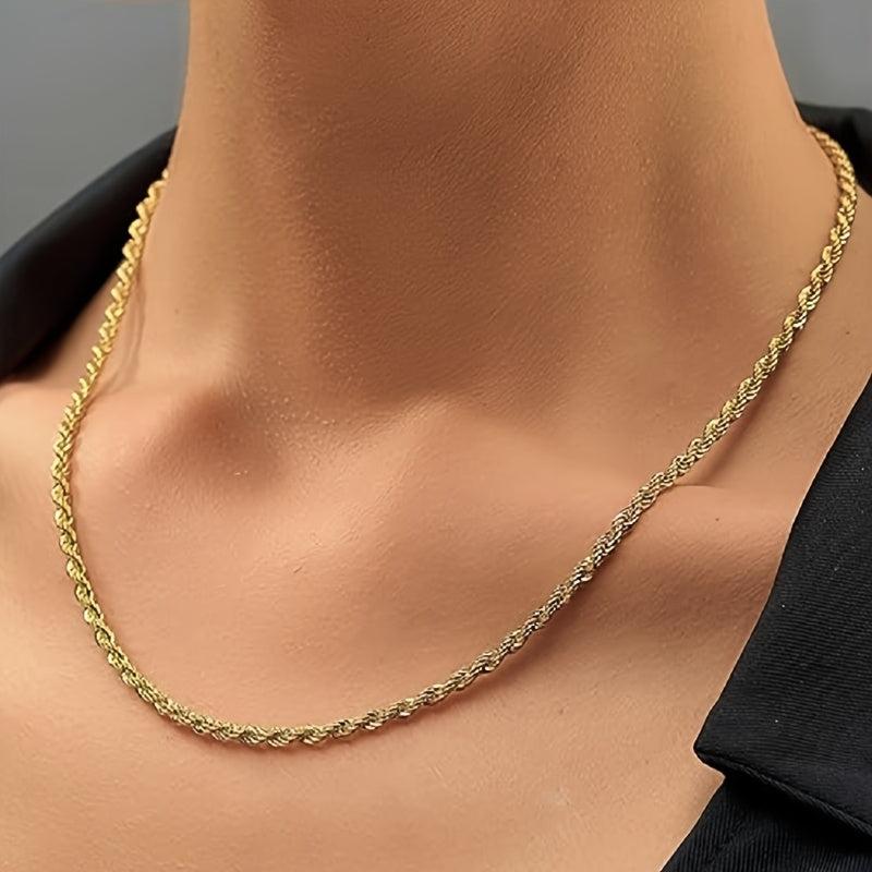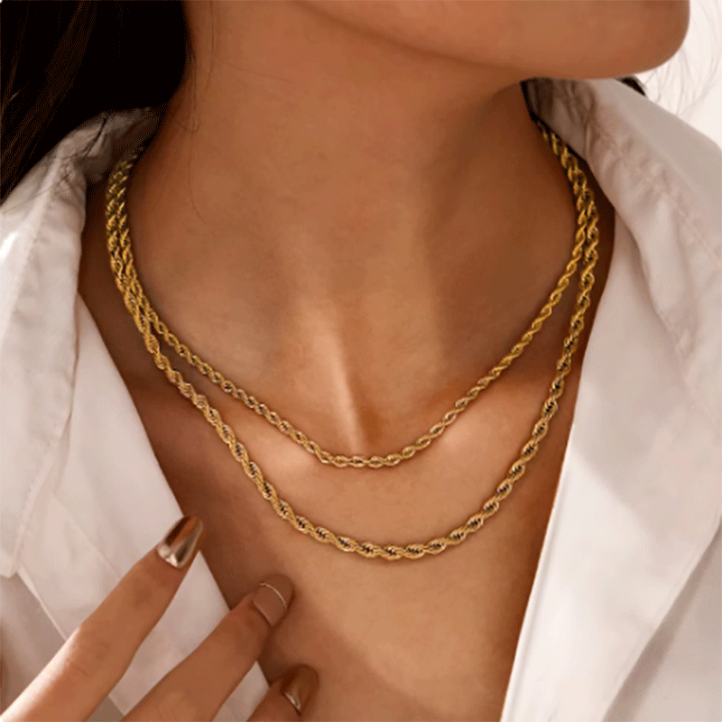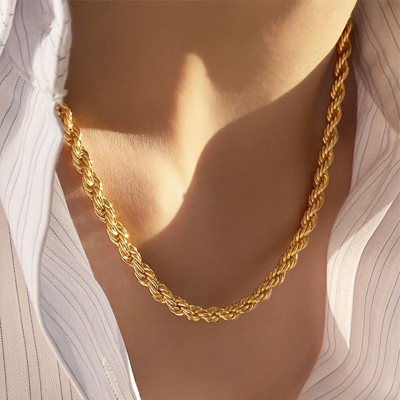 This stainless steel rope chain necklace is a stylish and durable accessory that never fades. It features a twisted long chain design that adds a modern touch to your look.