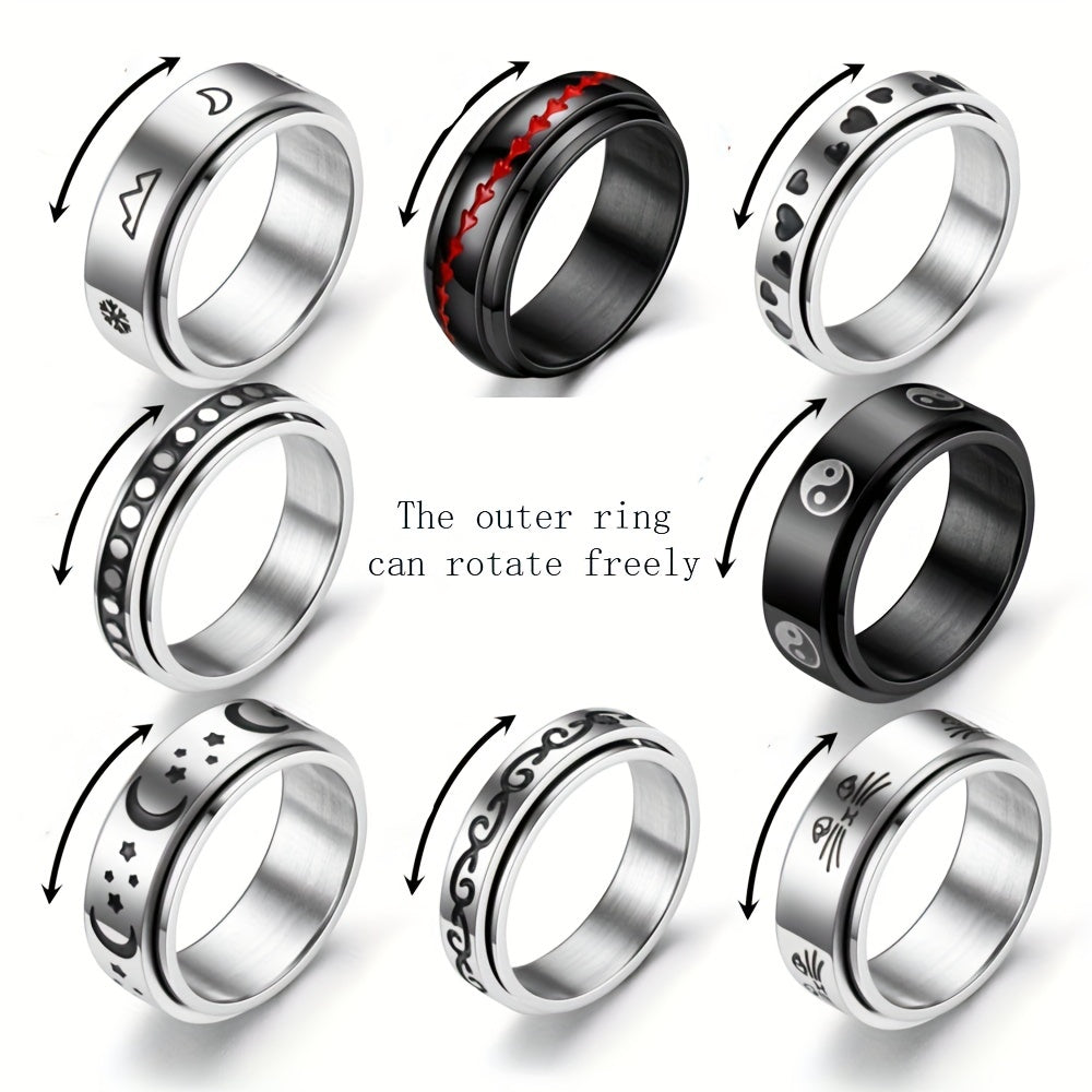 This stainless steel rotatable ring is a perfect stress-reliever. Choose from various styles to match your daily outfits.