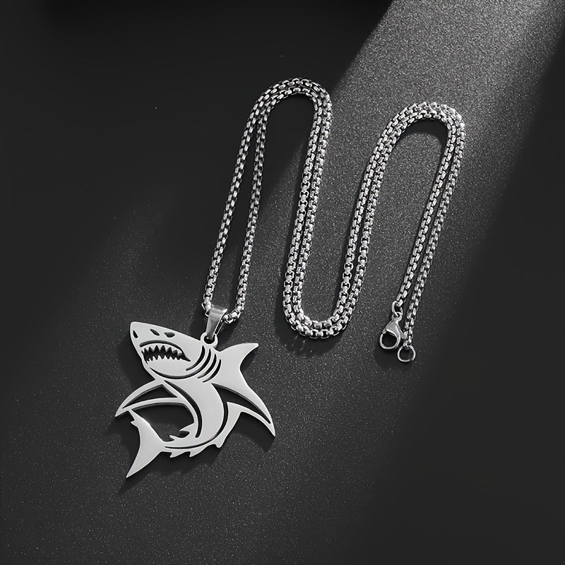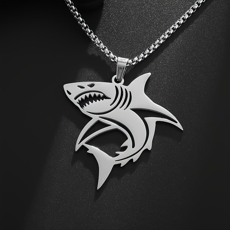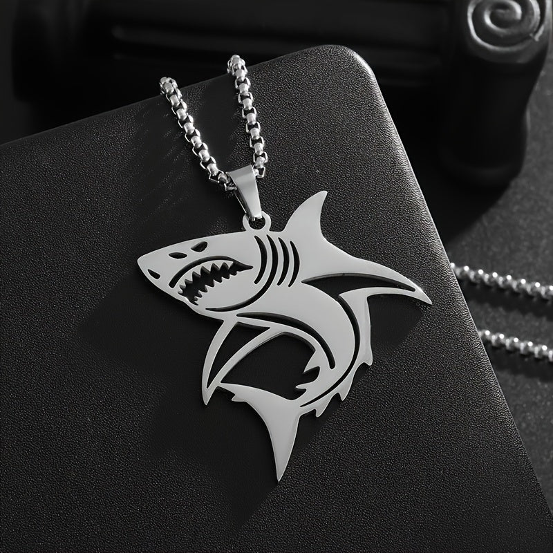 Add a unique touch to your style with this cool stainless steel shark silhouette charm necklace. It's a versatile accessory suitable for men and women.