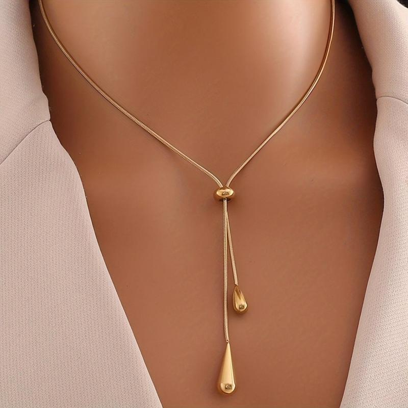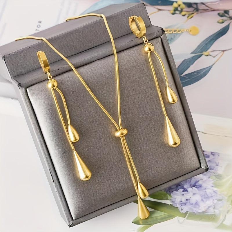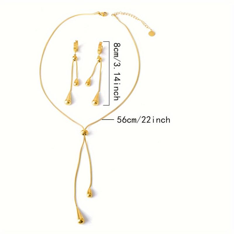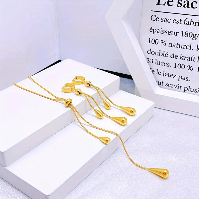 Elegant set featuring adjustable water drop pull accessories and stylish tassel earrings and necklace made of stainless steel.