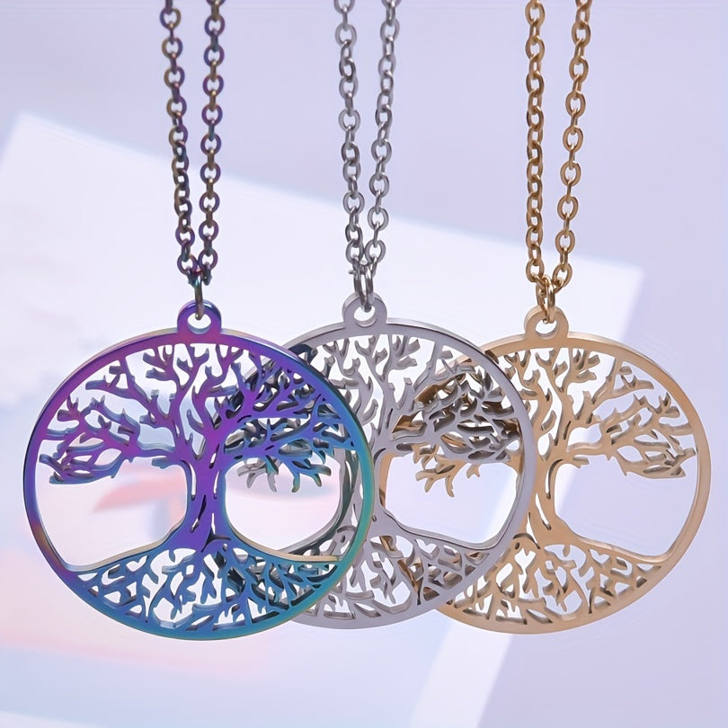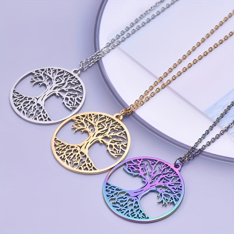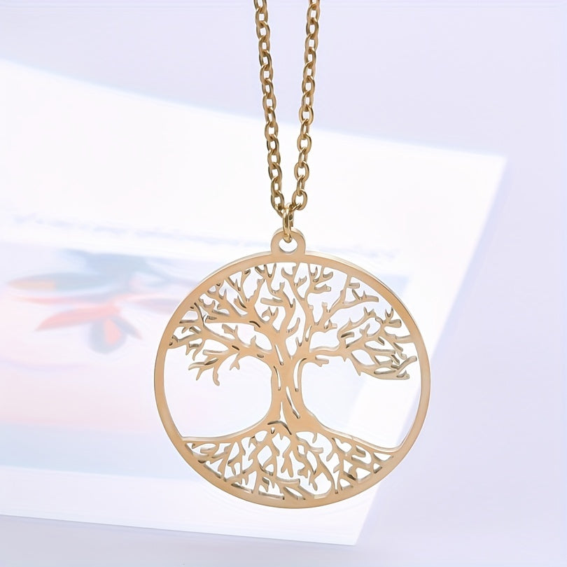This elegant tree of life pendant necklace is made of stainless steel with 18K gold plating. It is a perfect accessory for parties, holidays, or as a birthday gift for women and girls.