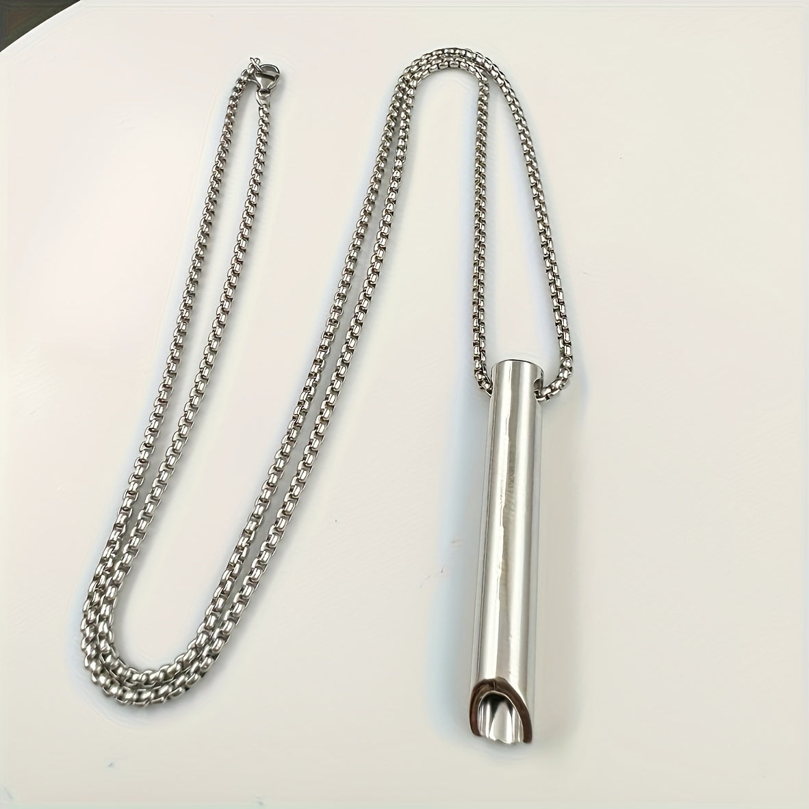 This stainless steel whistle pendant necklace is a perfect accessory for yoga, meditation, breath relaxation, anxiety relief, and more. It also makes a charming and meaningful gift for any occasion.