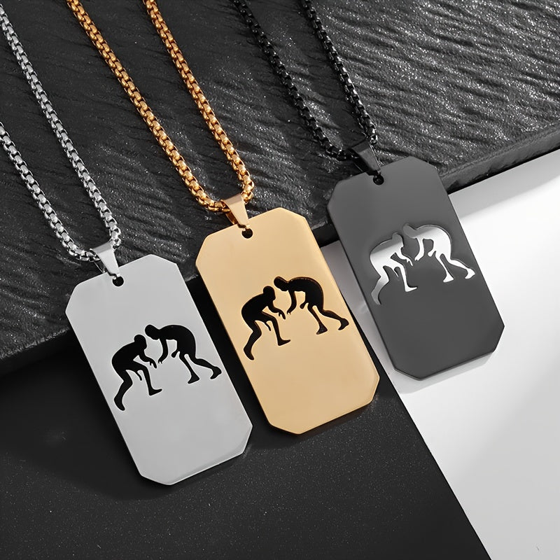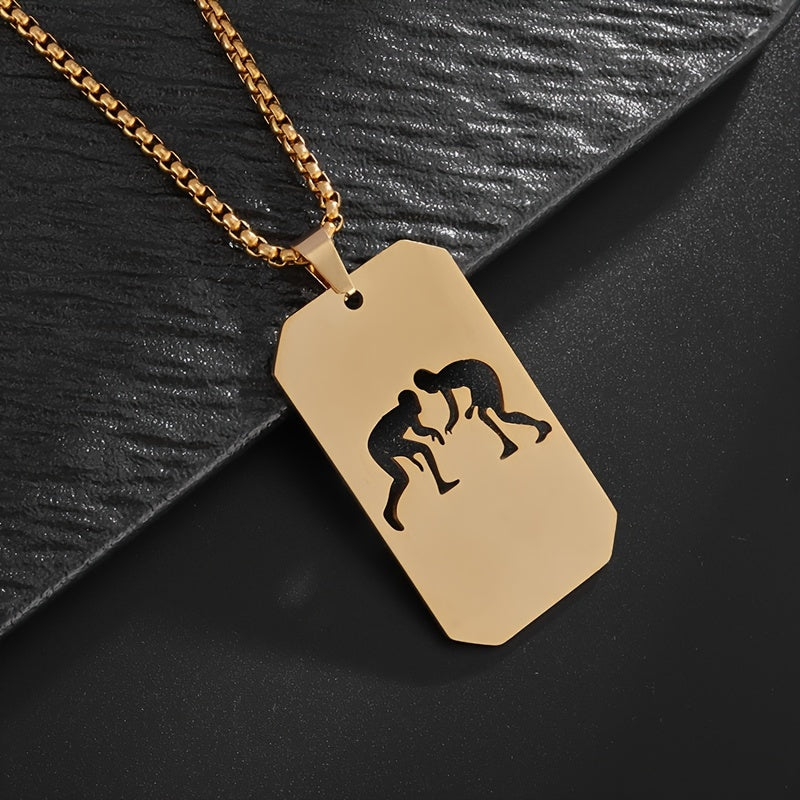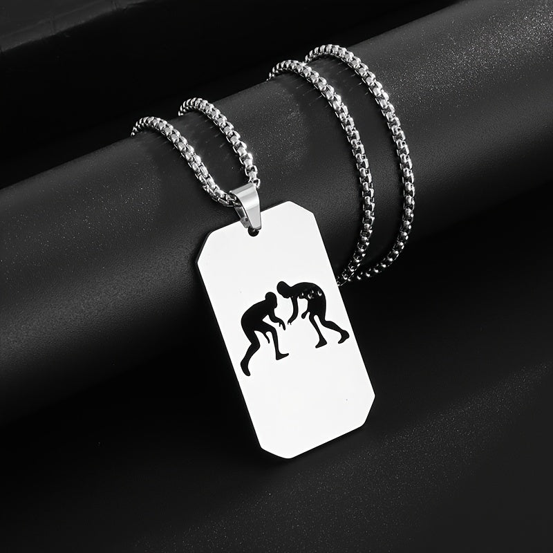 Stainless Steel Wrestling Pendant Necklace Unisex Gift for Men