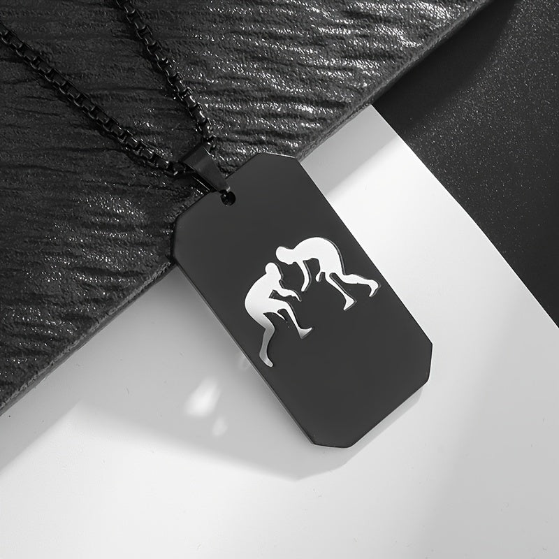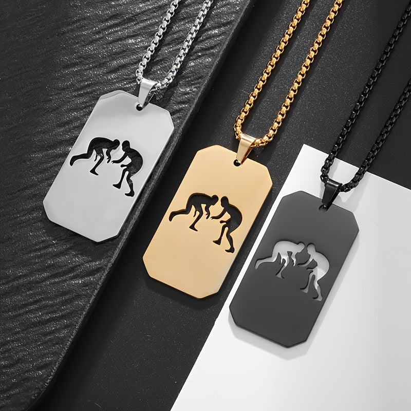 This stainless steel wrestling pendant necklace is a unique and fashionable accessory. It is the perfect gift for men who love wrestling.
