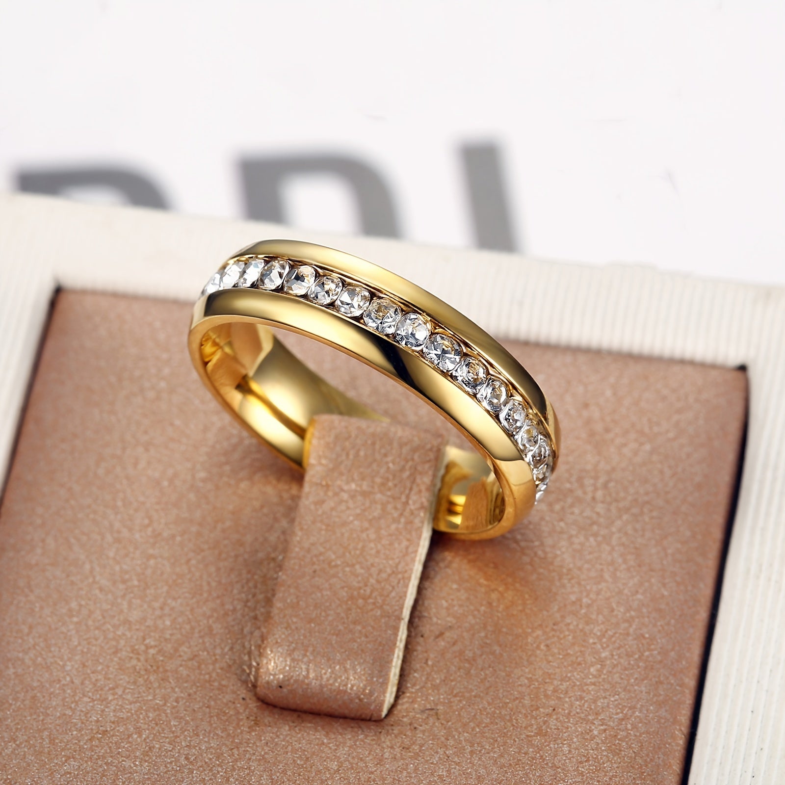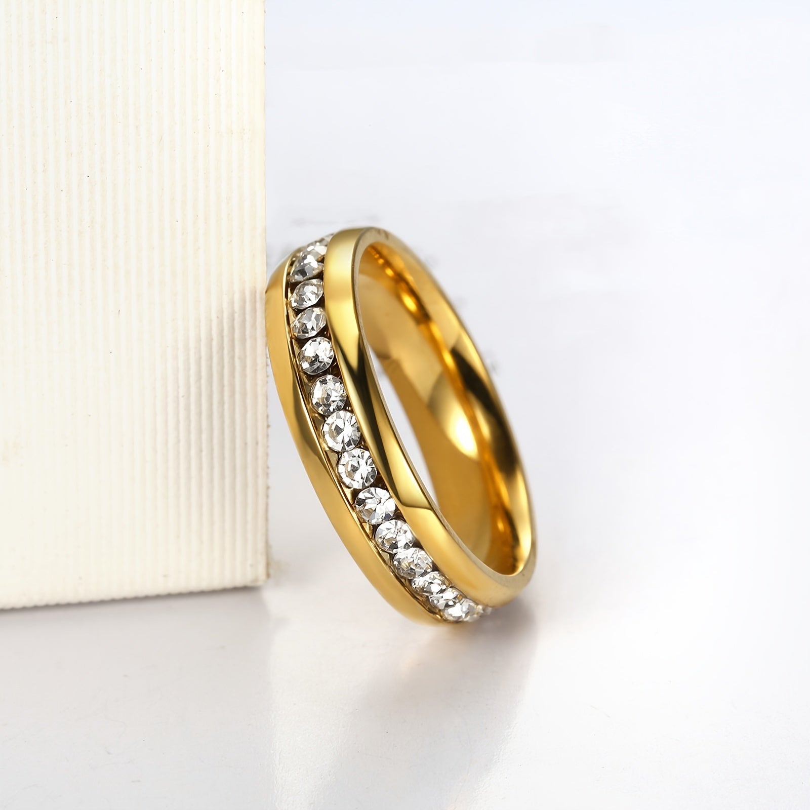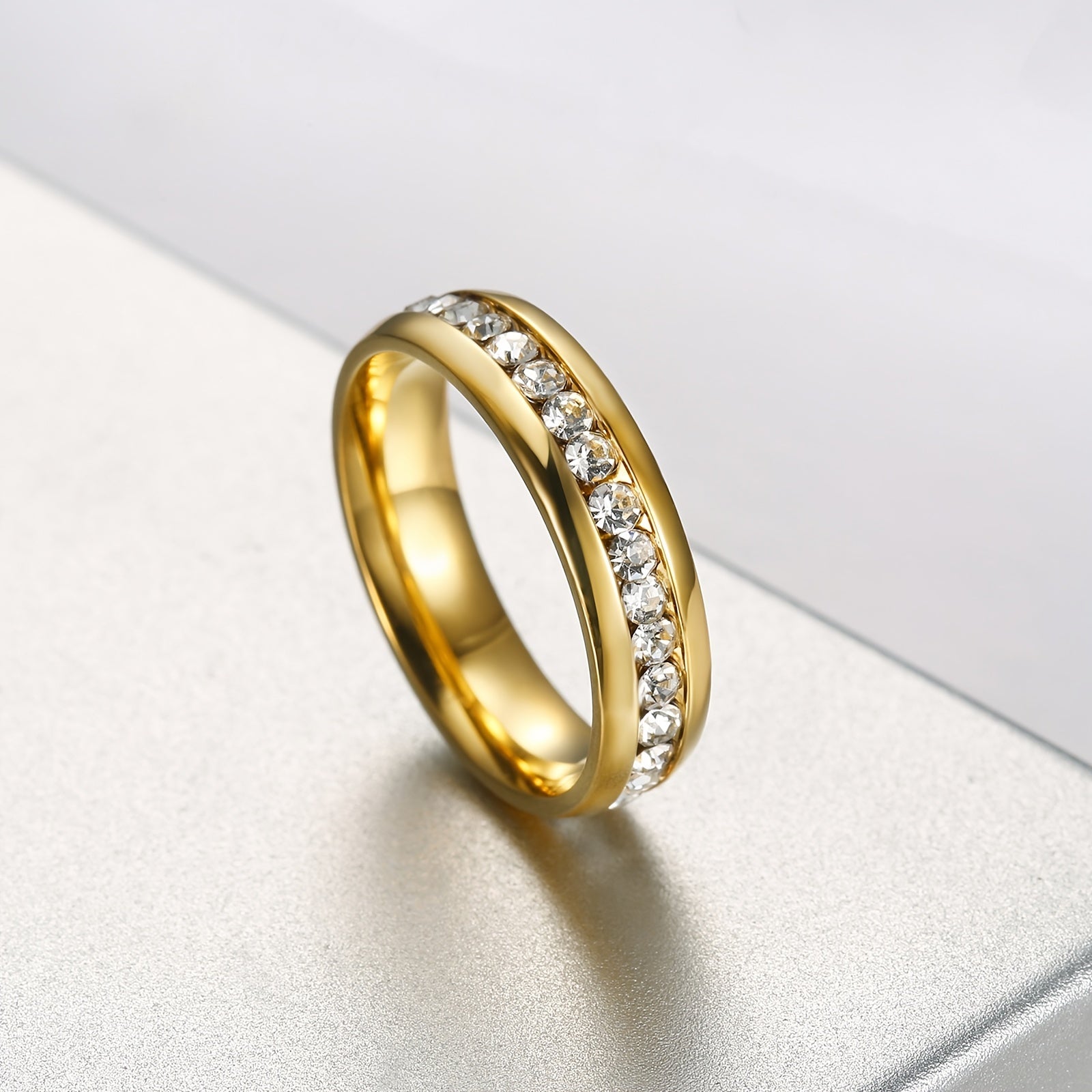 This stunning stainless steel ring with zircon stones is perfect for weddings, parties, or as a gift. It is 18K plated for a luxurious finish.