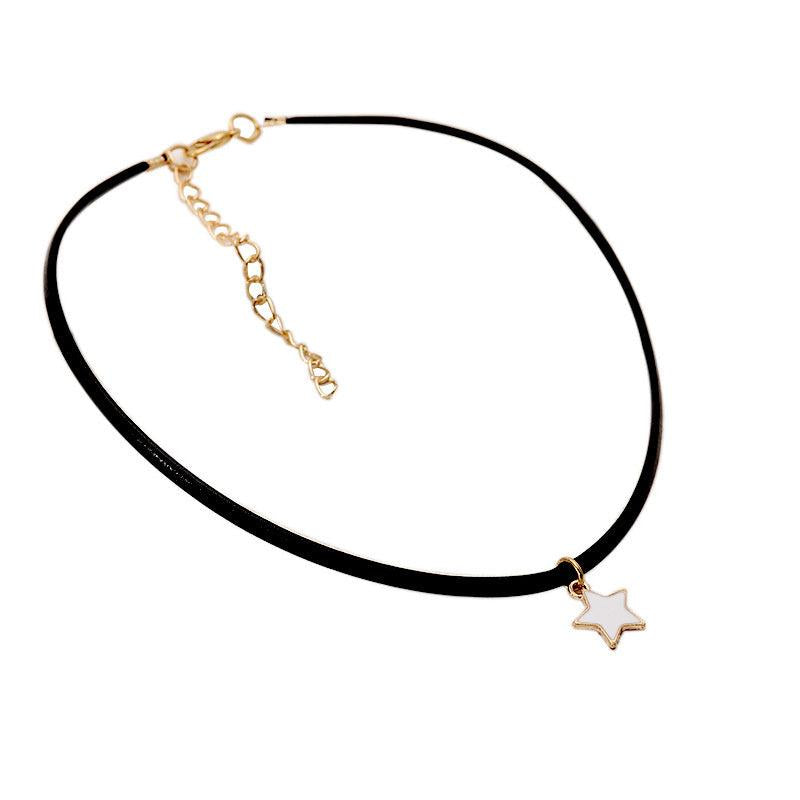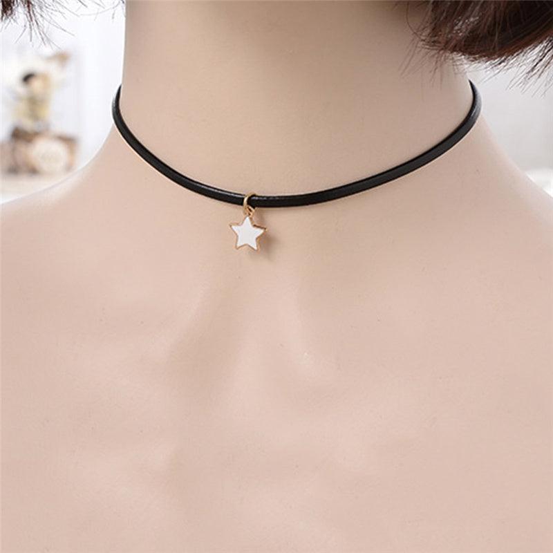 Minimalist style choker necklace with star charm, perfect for parties and events. Made of high-quality PU leather, this vintage punk jewelry piece adds a touch of edgy style to any outfit.