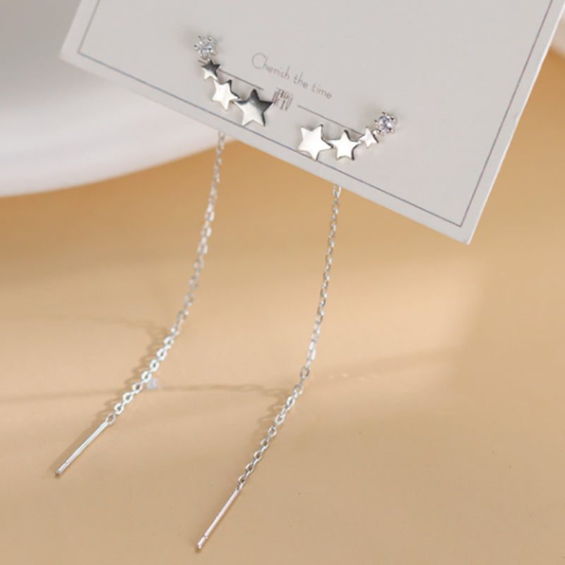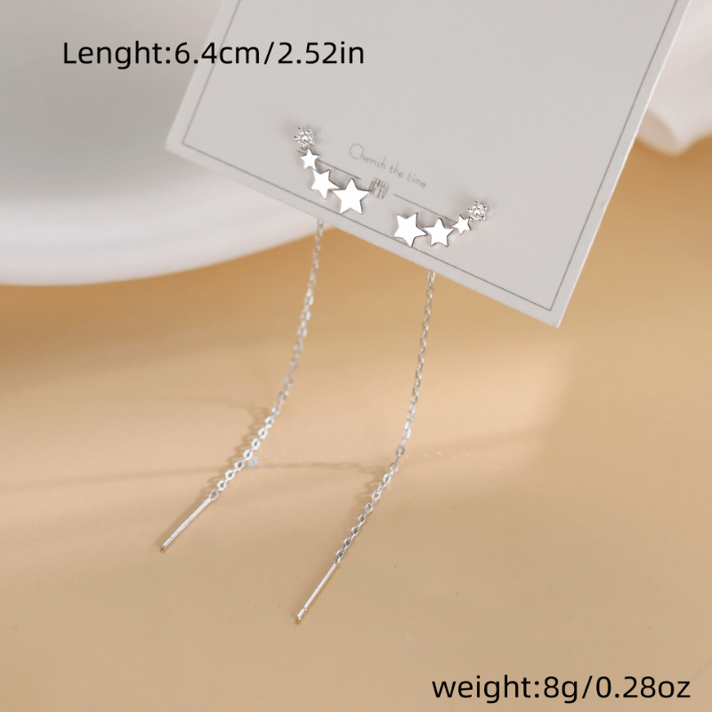 These elegant star long chain dangle earrings are a perfect accessory for weddings, banquets, or engagements. They are made of copper and make a great gift for females.