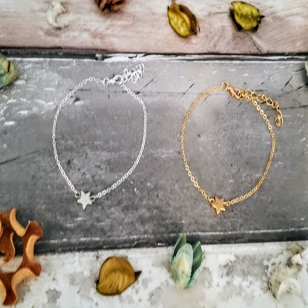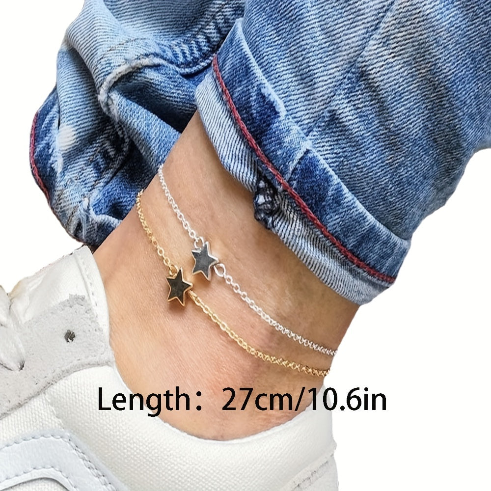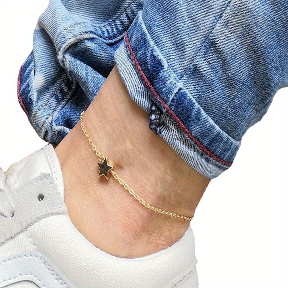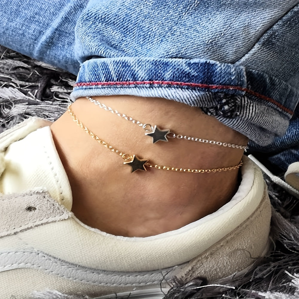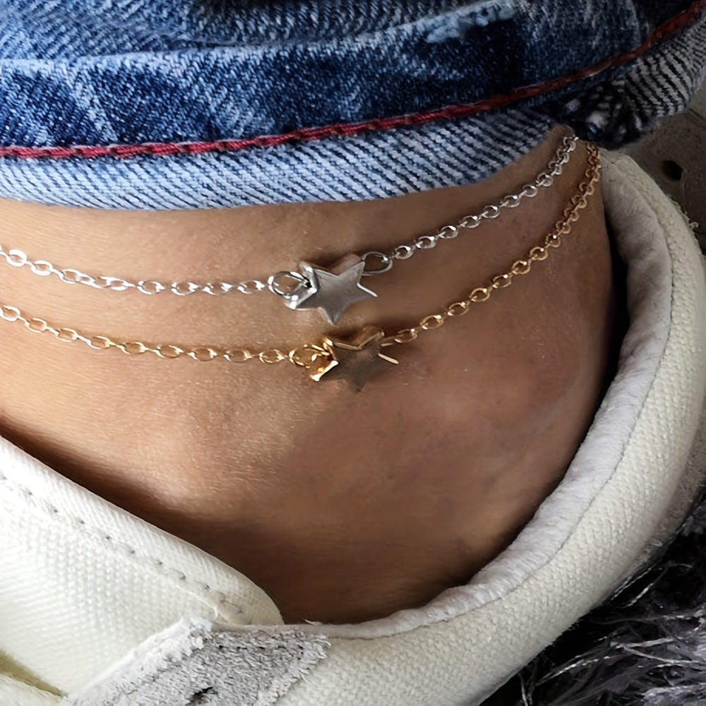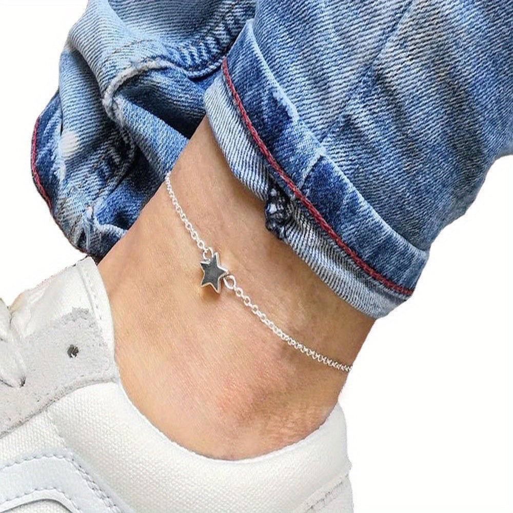 Add a touch of glamour to your summer beach look with this stylish anklet featuring star-shaped beads and a delicate chain design.
