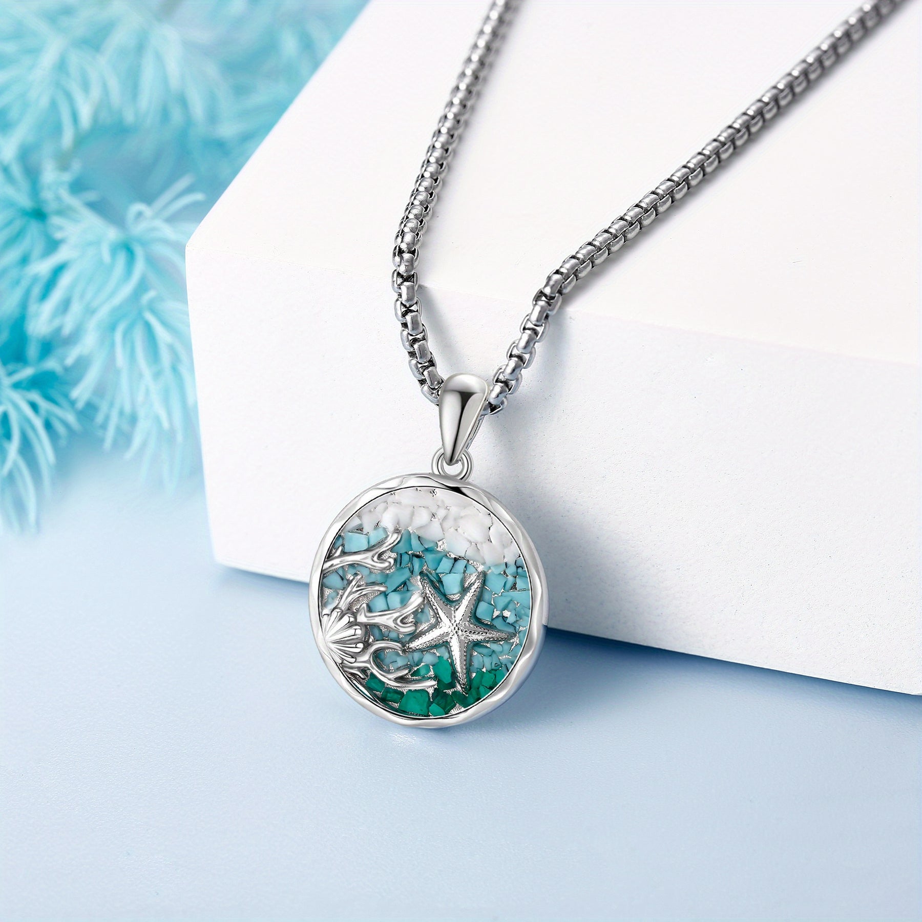 Adorn yourself with this stunning starfish necklace crafted from 925 sterling silver and synthetic turquoise. Perfect for women and men who love ocean-inspired jewelry.
