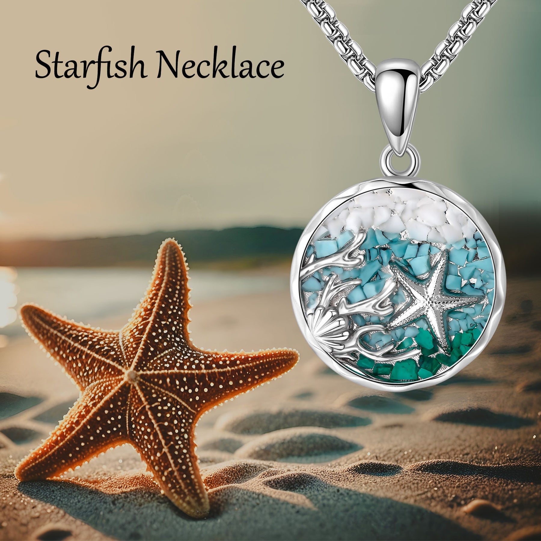 Starfish Necklace Sterling Silver Turquoise Pendant Ocean Jewellry