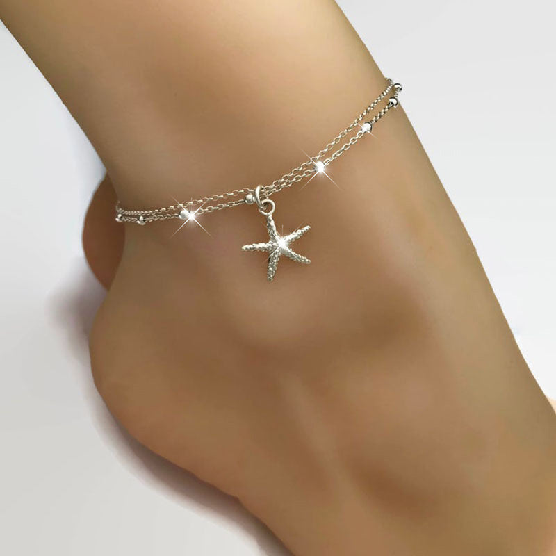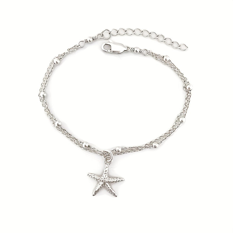 This anklet features a beautiful starfish shape pendant on a thin chain. Perfect for beach weddings or everyday wear. Adjustable length to fit most ankles.
