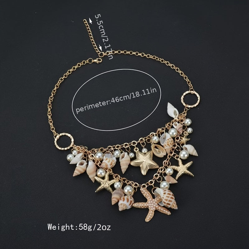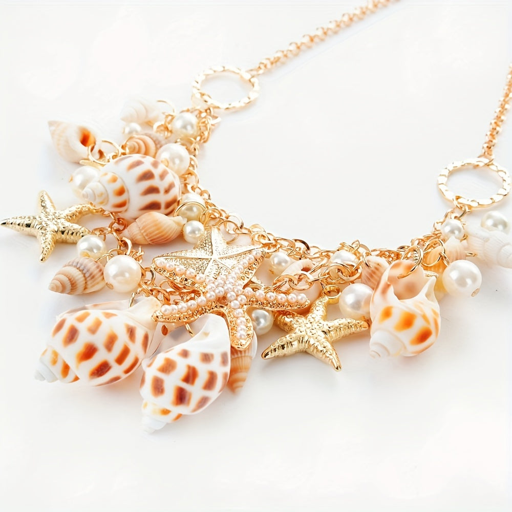Add a touch of seaside charm to your look with this stunning starfish shell pendant necklace. Perfect for beach summer vibes and holiday outfits.
