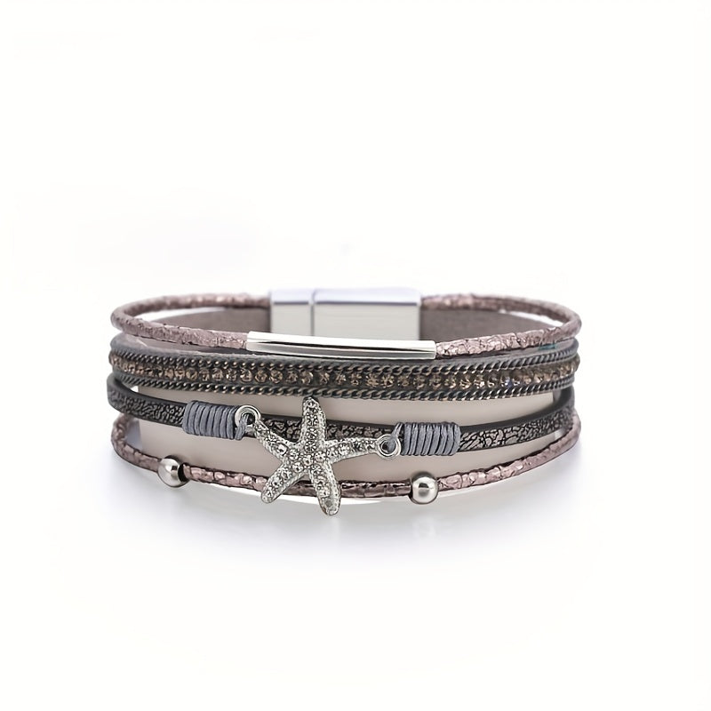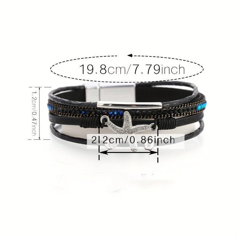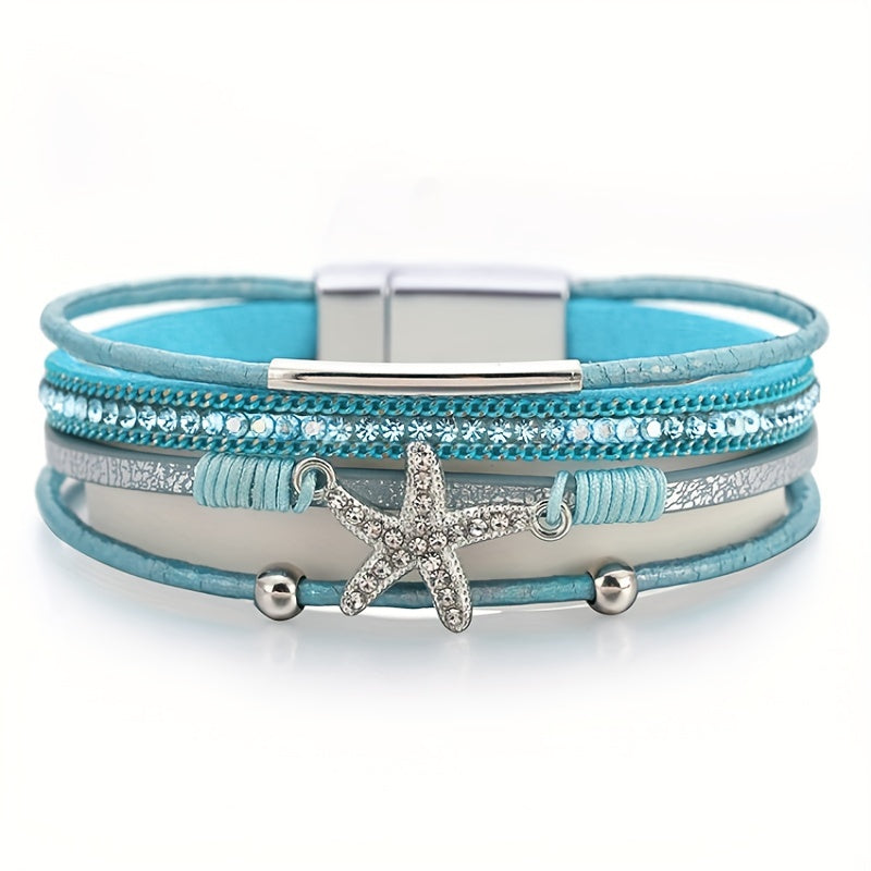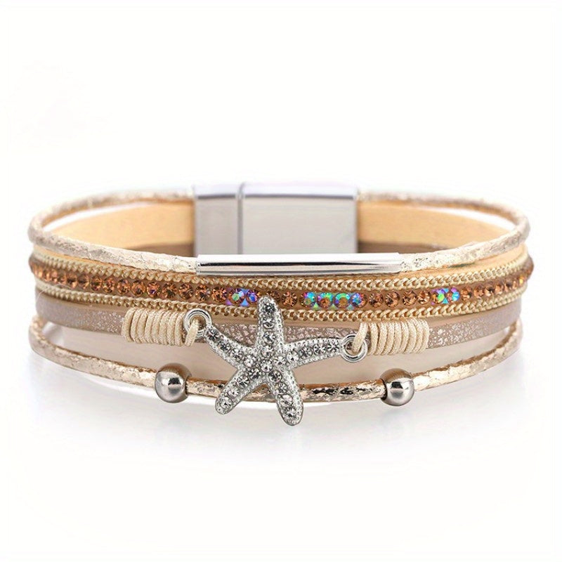 Elevate your summer beach look with this stylish starfish wrap bracelet featuring PU leather and rhinestones. Perfect for adding a touch of elegance to your outfits.