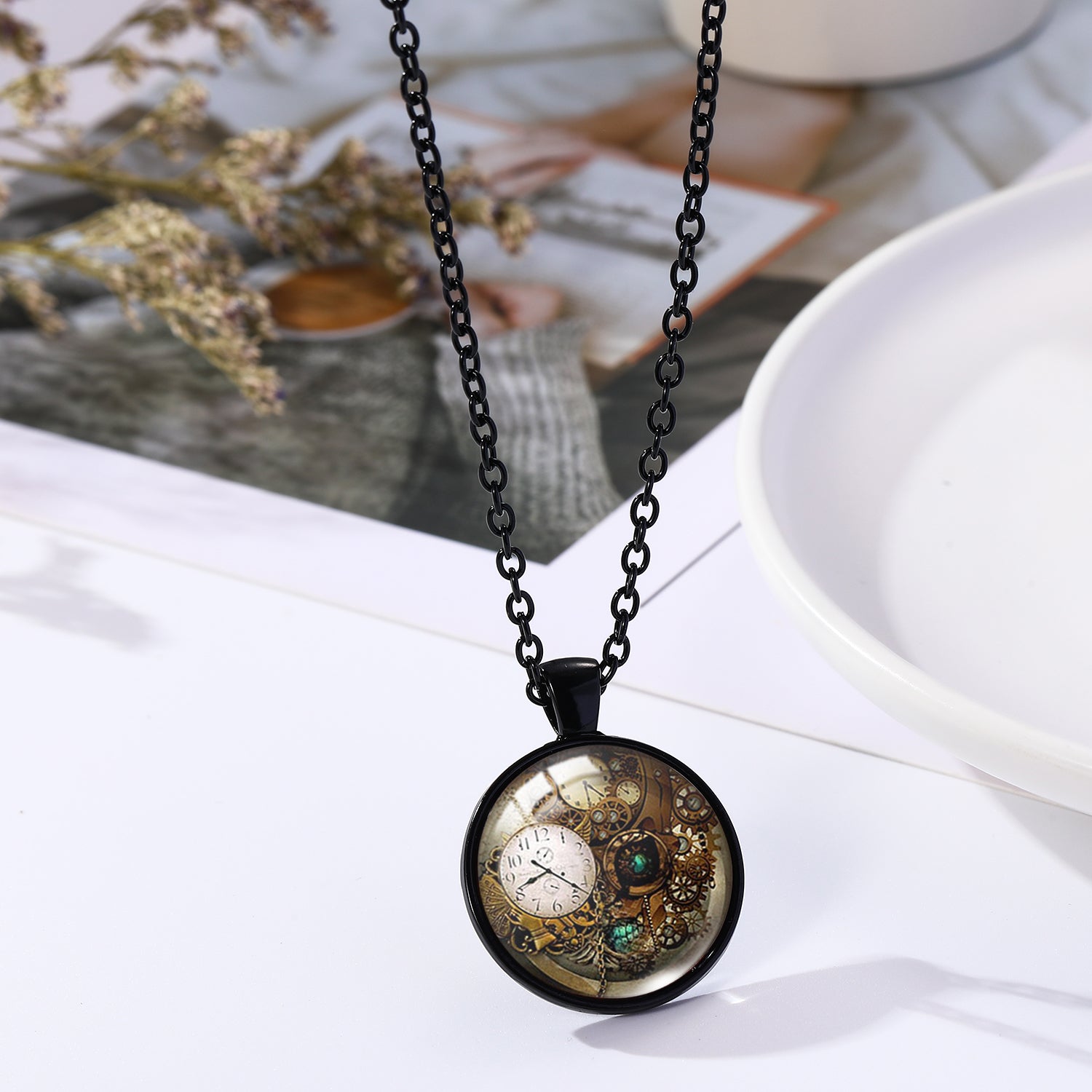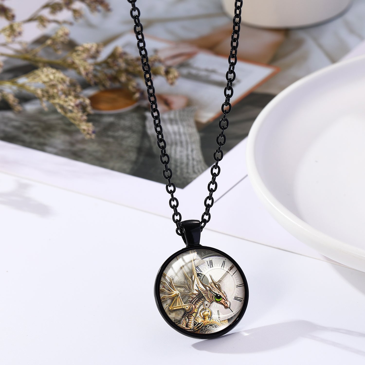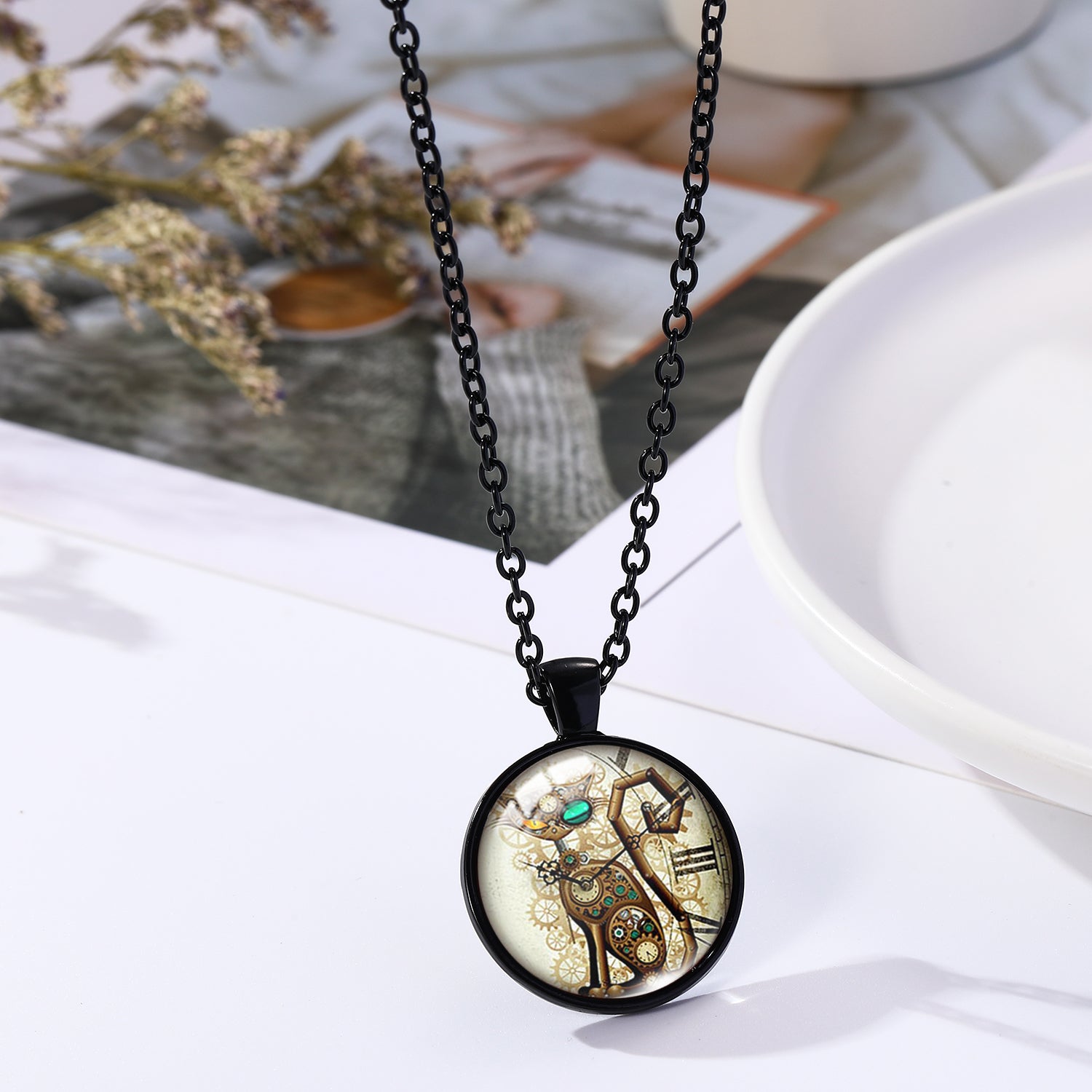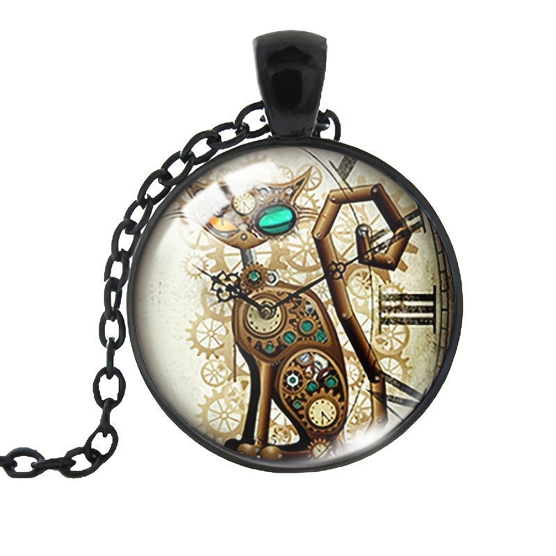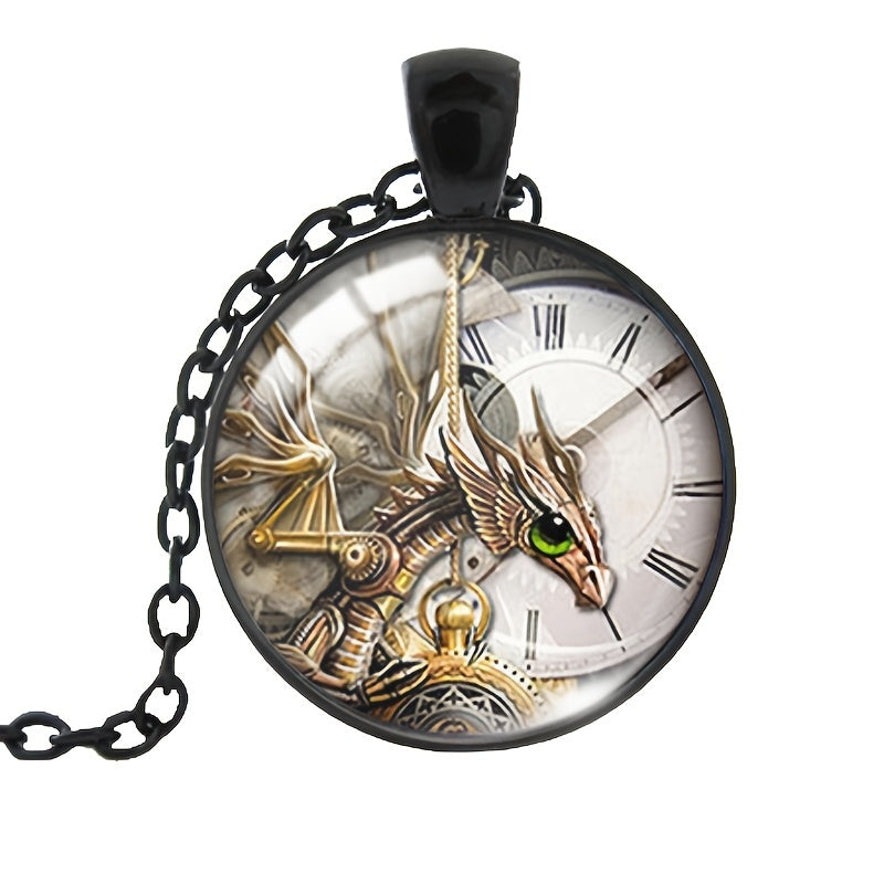 Add a touch of Victorian charm to your outfit with this unique steampunk pendant necklace featuring a clock shape and animal pattern design. Perfect for goth and mechanical style lovers.