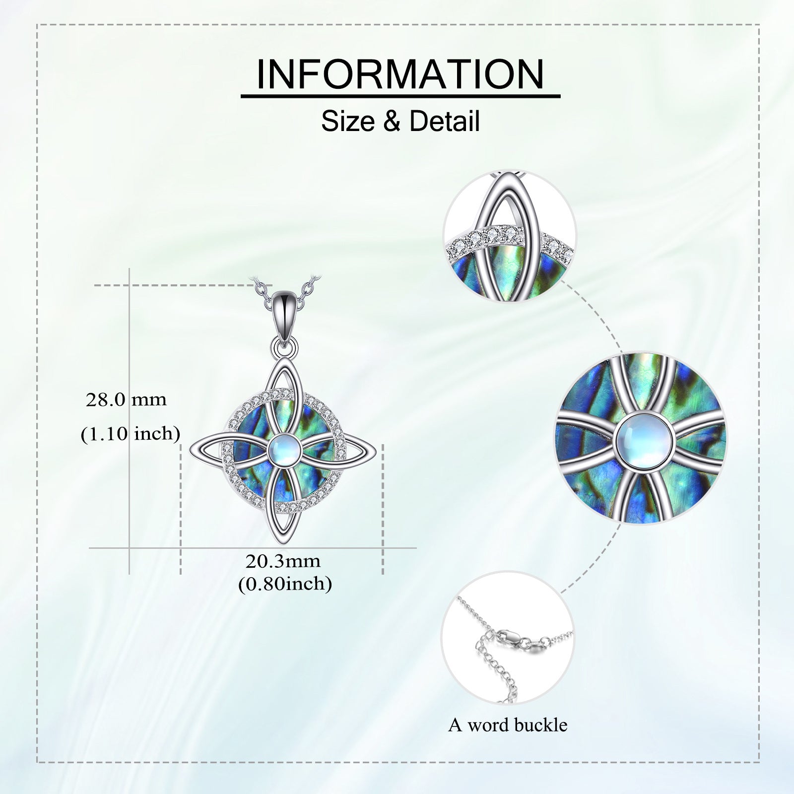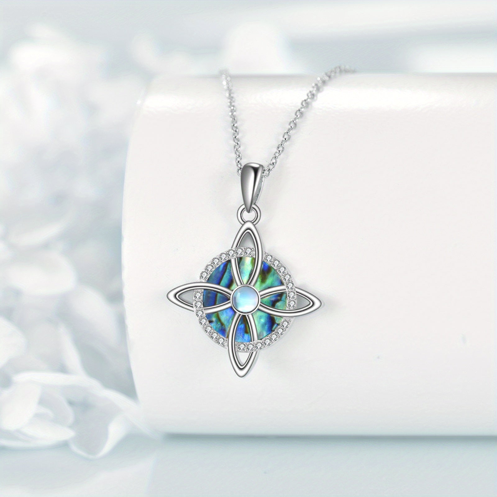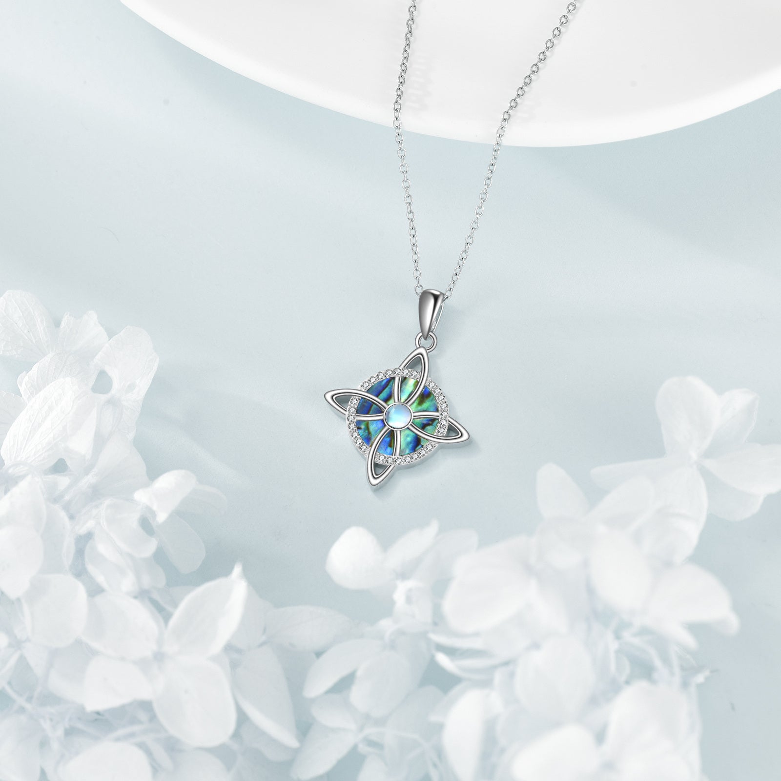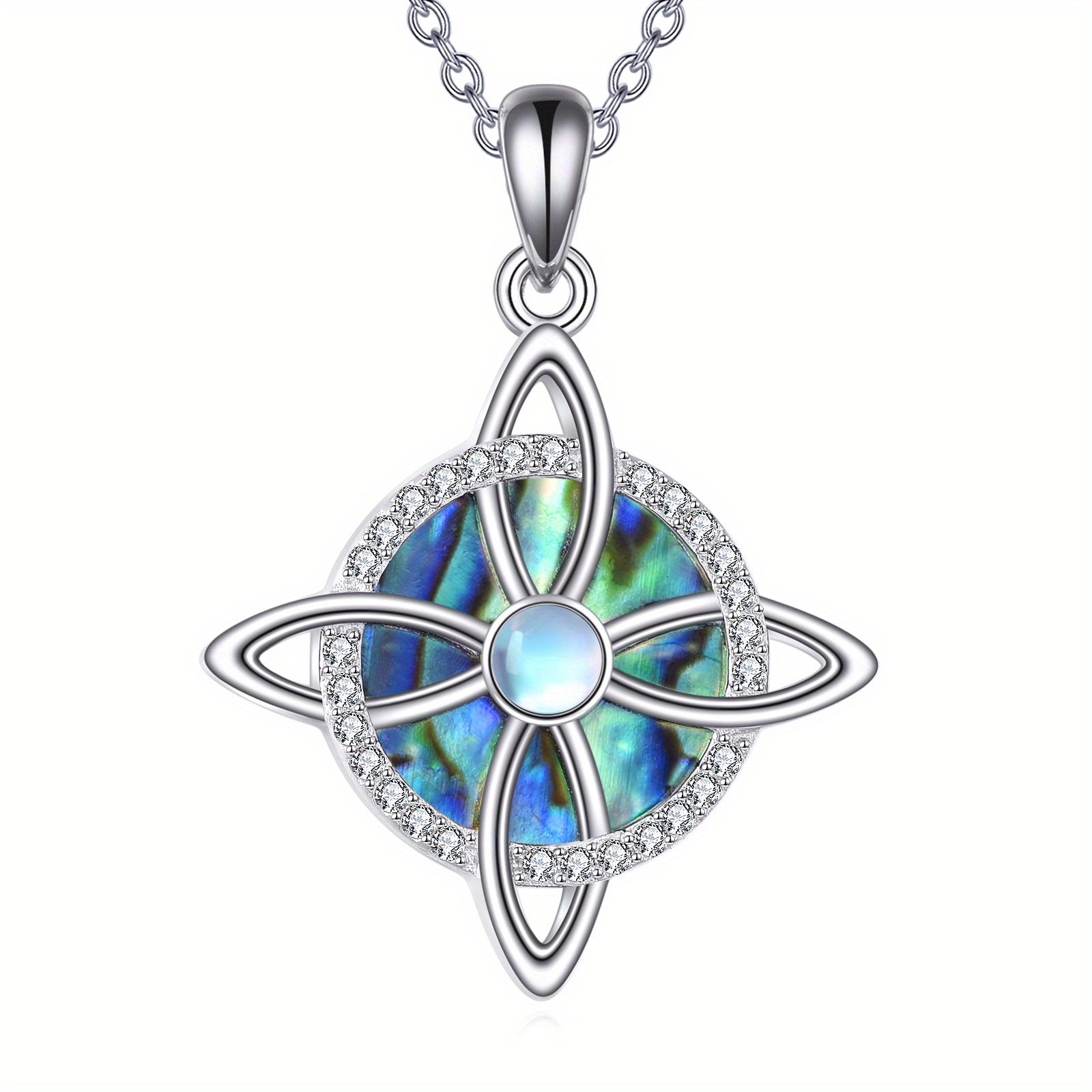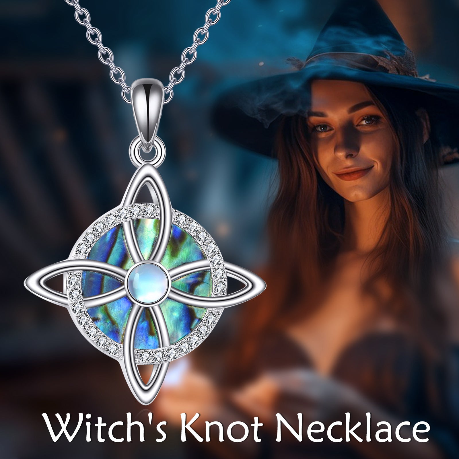 Embrace the mystical with this stunning 925 sterling silver Witches Knot necklace featuring an abalone shell pendant. Perfect for Halloween or any occasion.