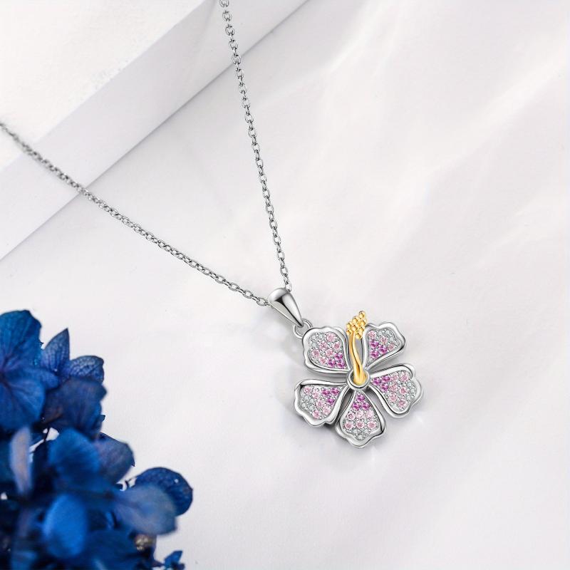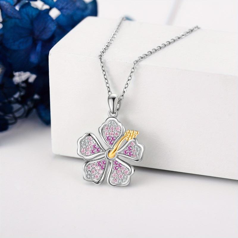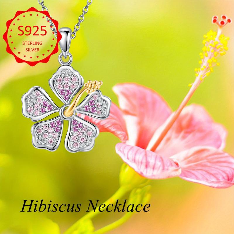 This stunning hibiscus necklace is crafted from 925 sterling silver and features a beautiful pink hibiscus flower pendant. Perfect for Hawaiian tropical style lovers.