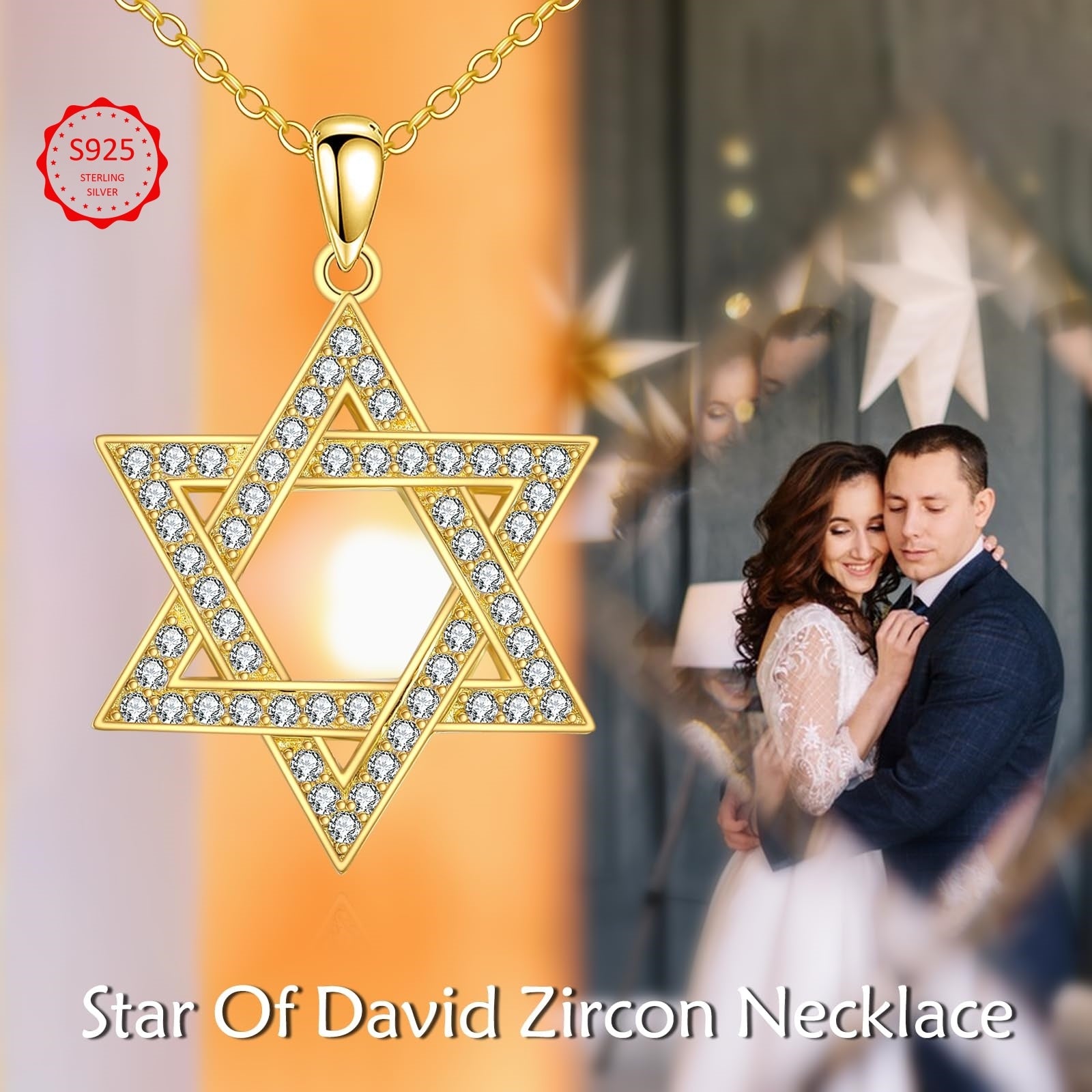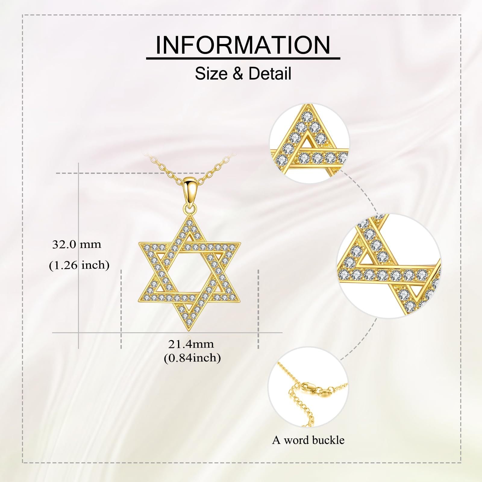 This 925 sterling silver necklace features a golden Star of David pendant. Suitable for both women and men.