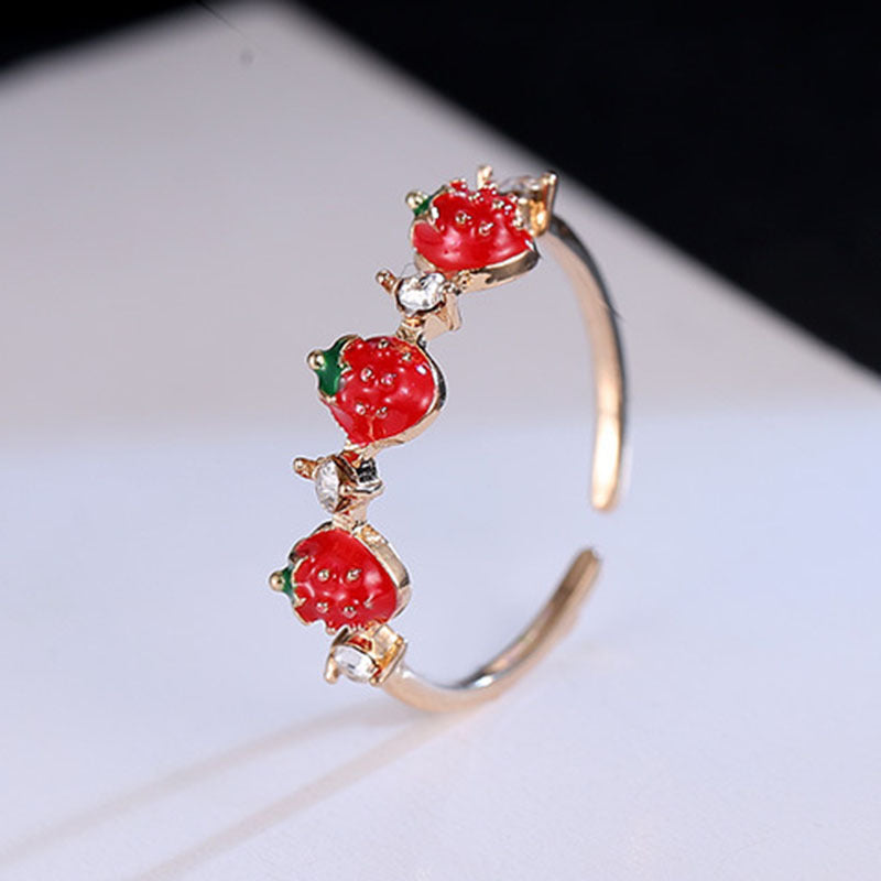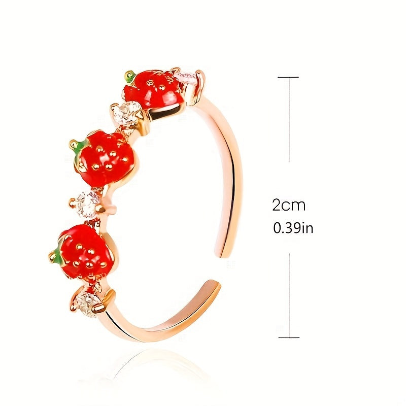 Add a sweet touch to your look with this strawberry ring featuring a 14K plated finish. Perfect for women and girls who love Y2K style.