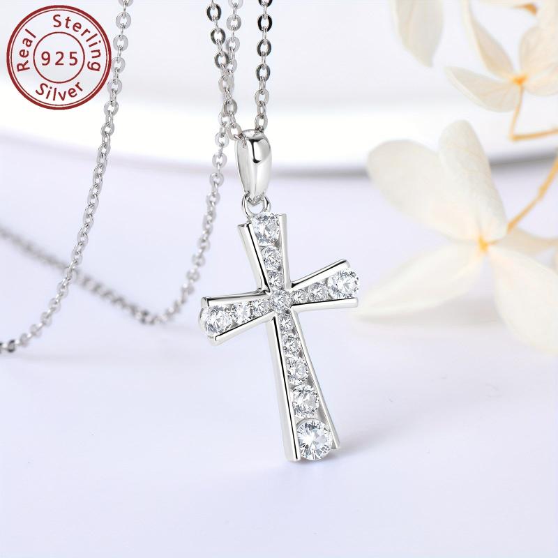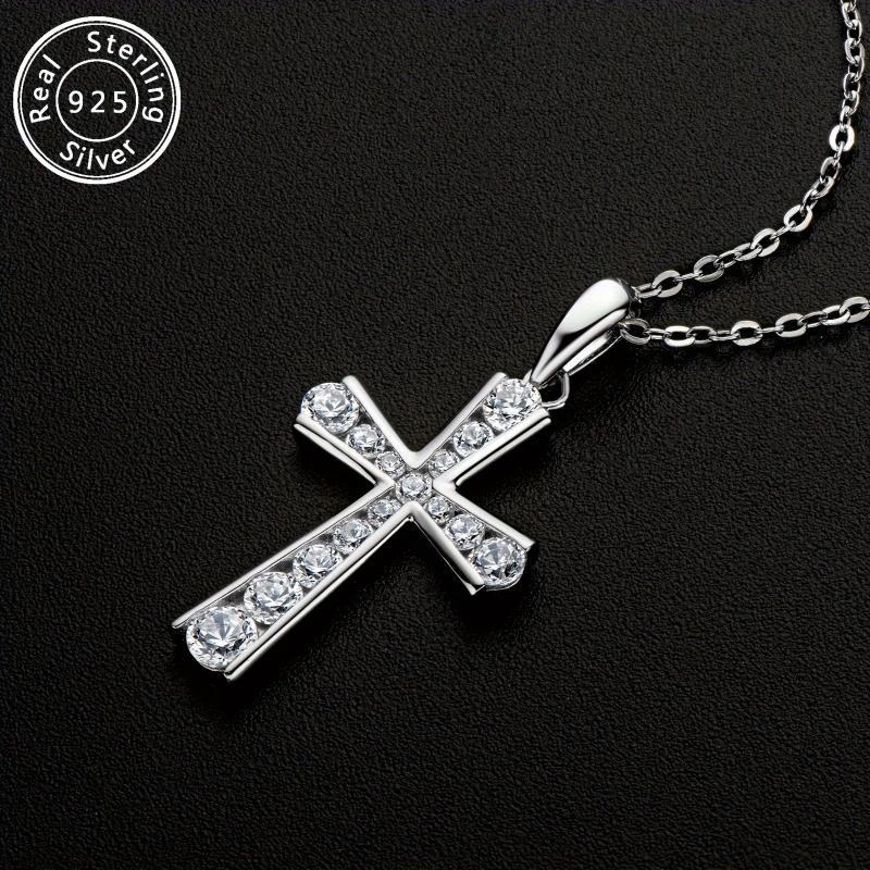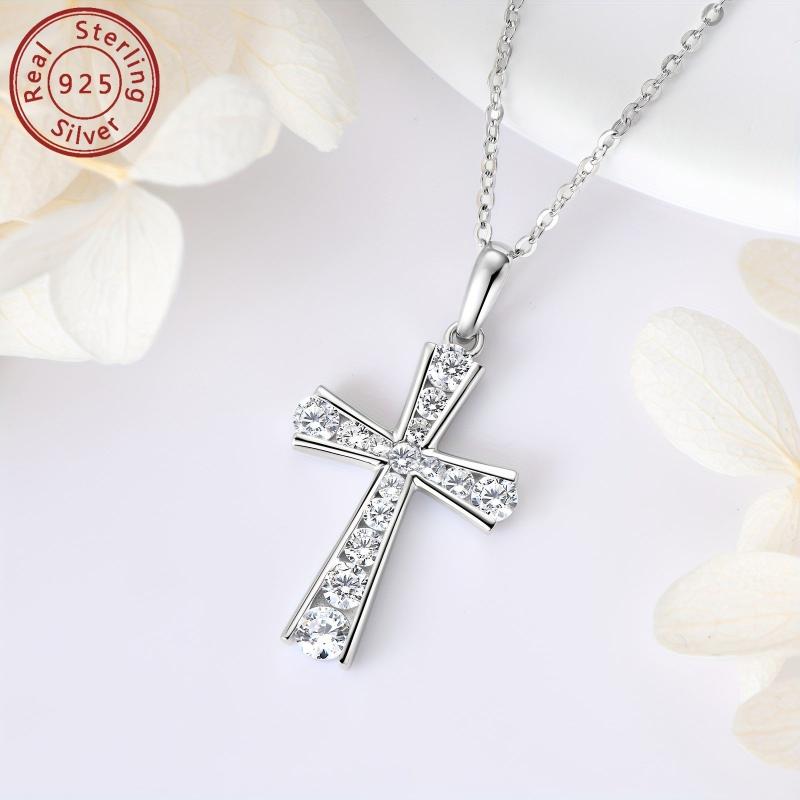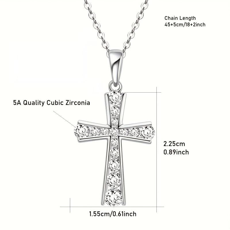 Elegant cross pendant necklace for women crafted from 925 silver with a round synthetic zirconia accent. The chain is 45.5cm long, perfect for everyday wear.