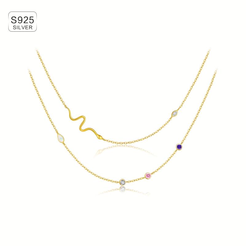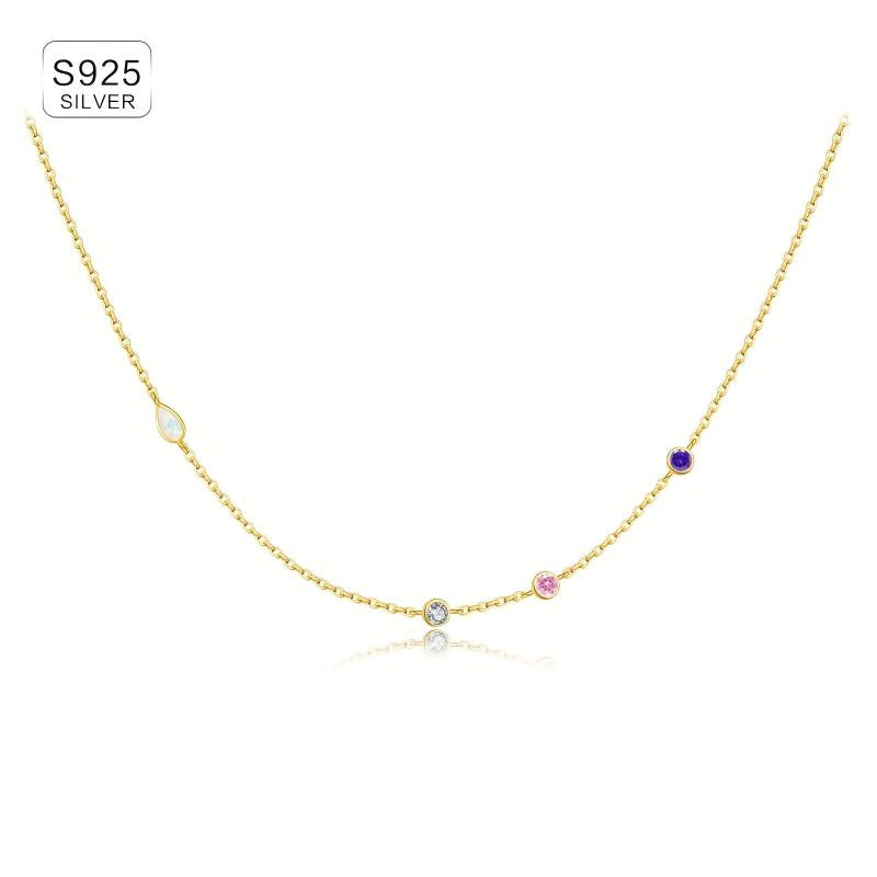 Elegant necklace plated in 18K gold with synthetic zirconia. Nickel-free and lightweight.