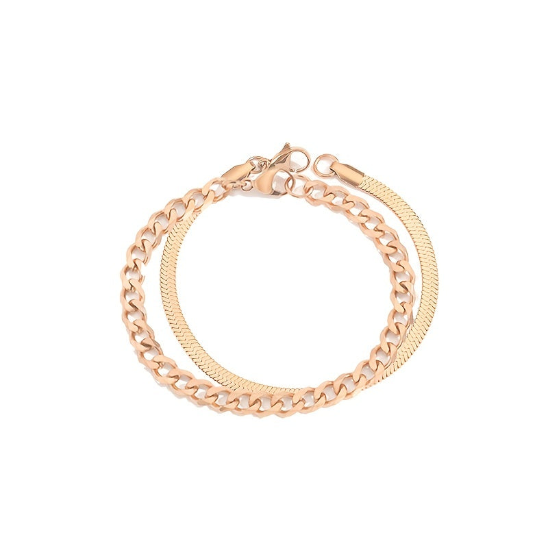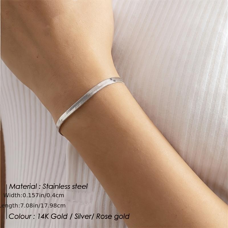 Elevate your look with this trendy Cuban chain bracelet made of stainless steel with a 14K gold plating finish. Perfect for women who love bold and stylish accessories.