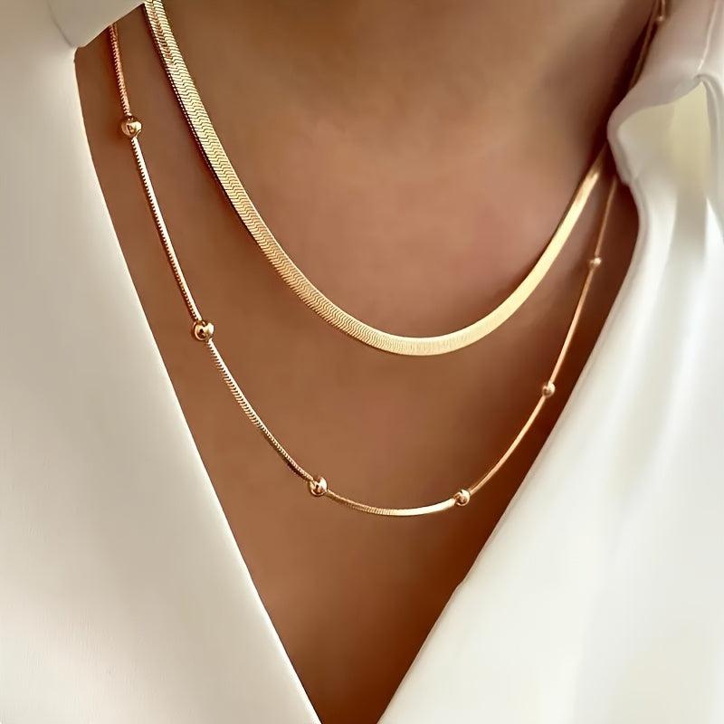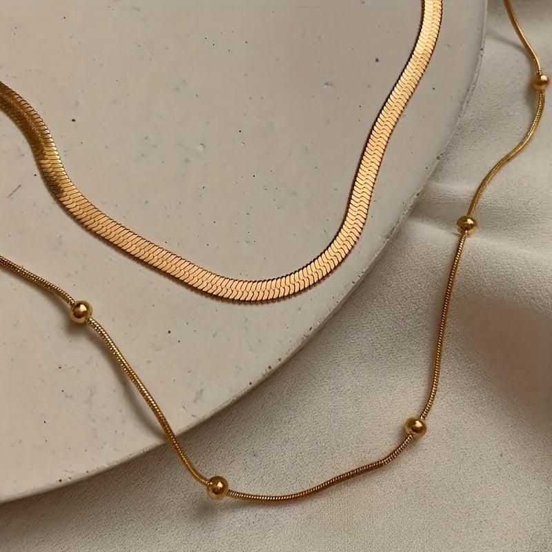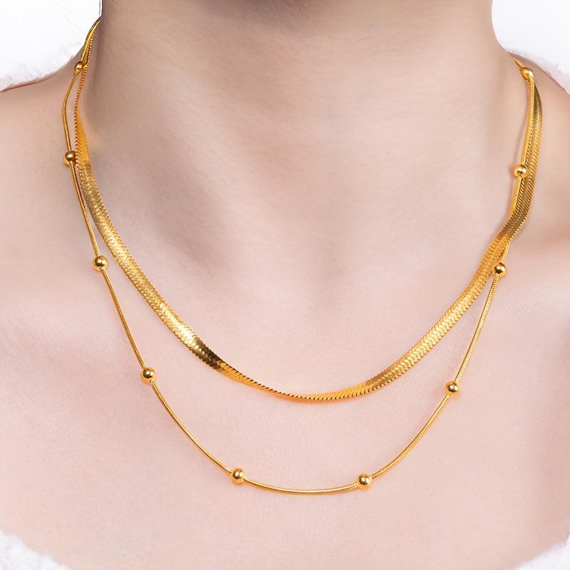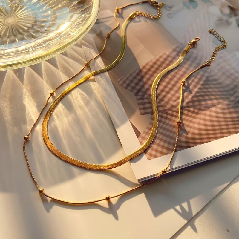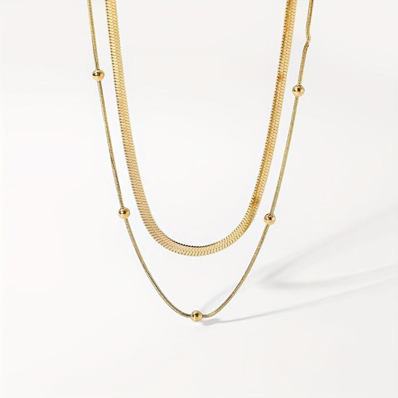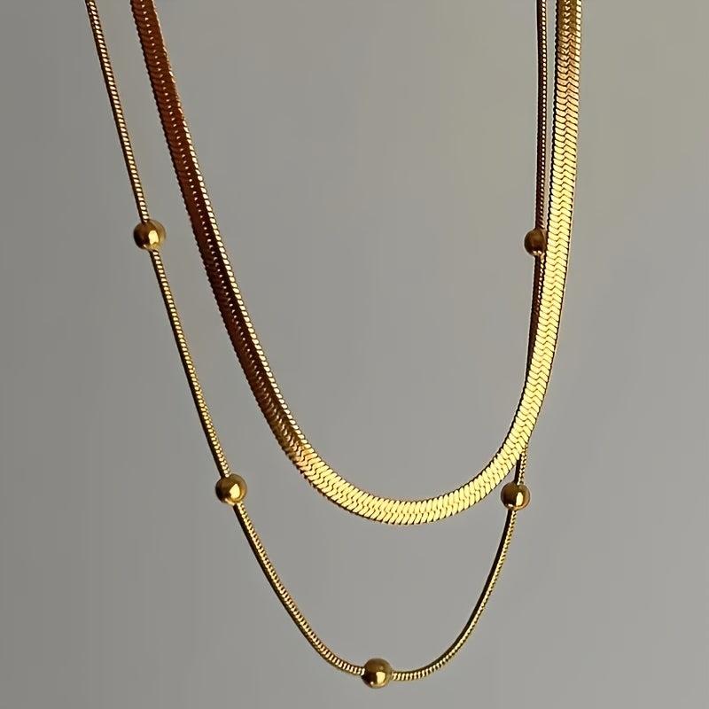 This stainless steel choker features a variety of chain and bead accents, making it perfect for everyday wear.
