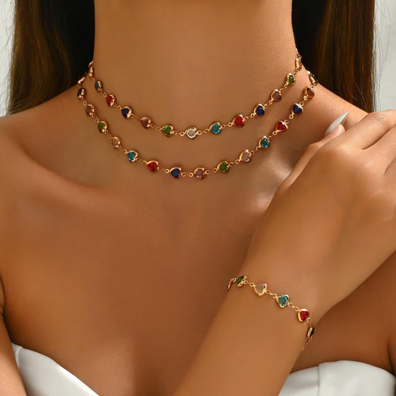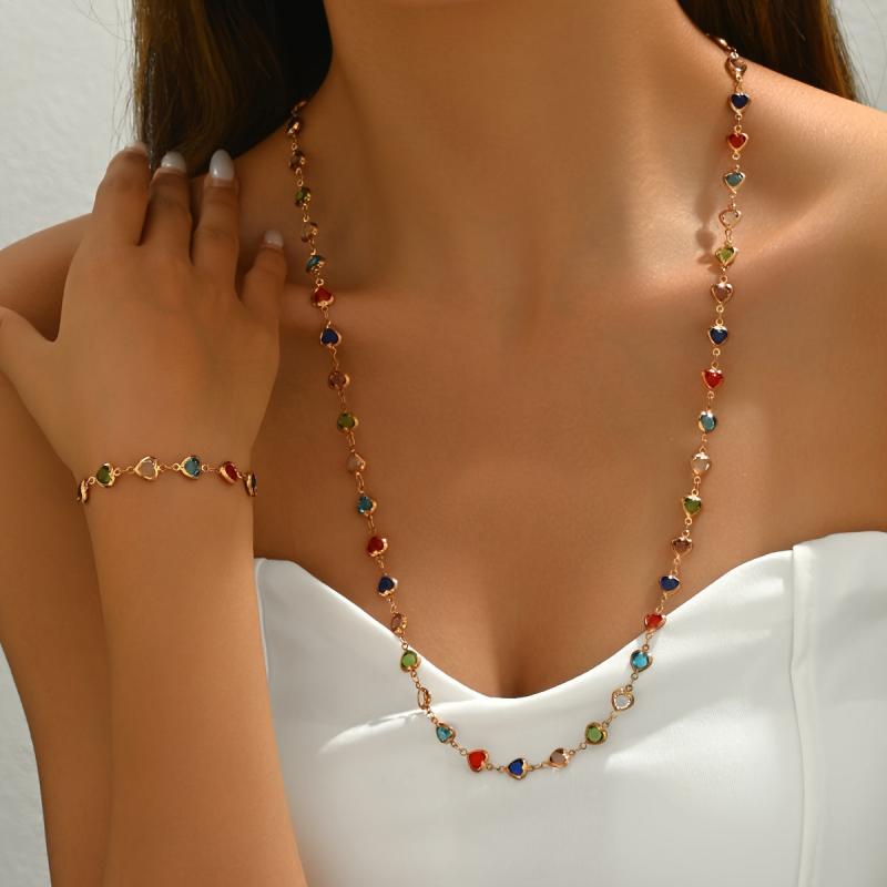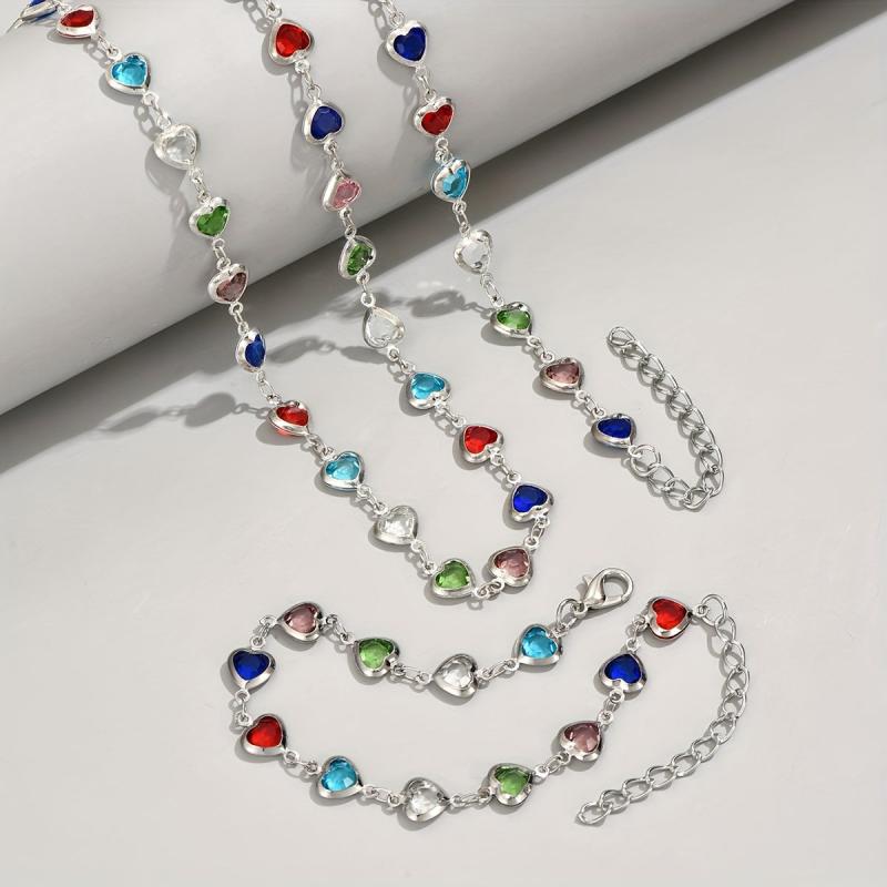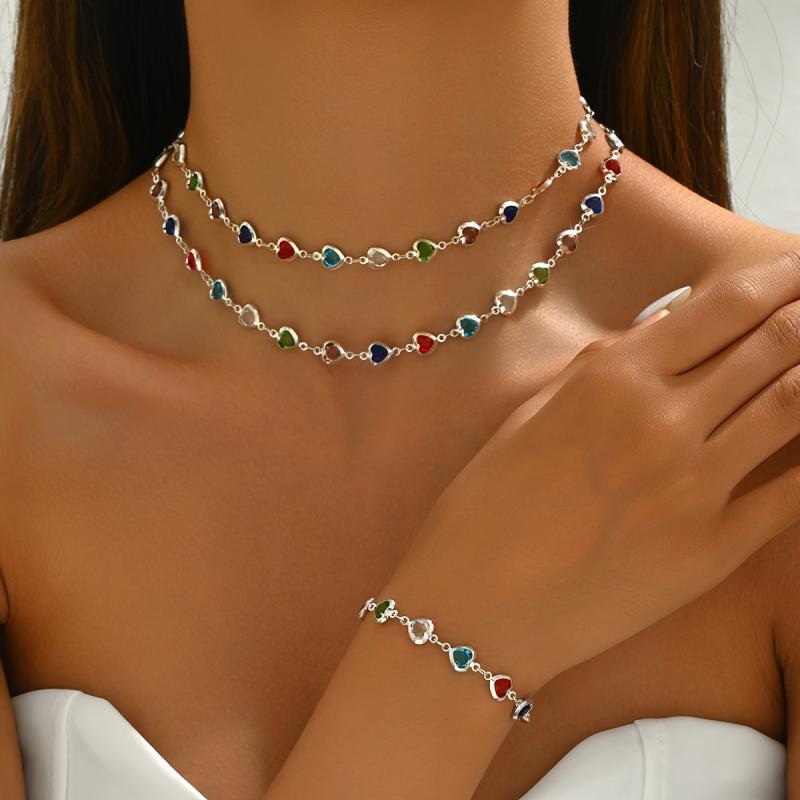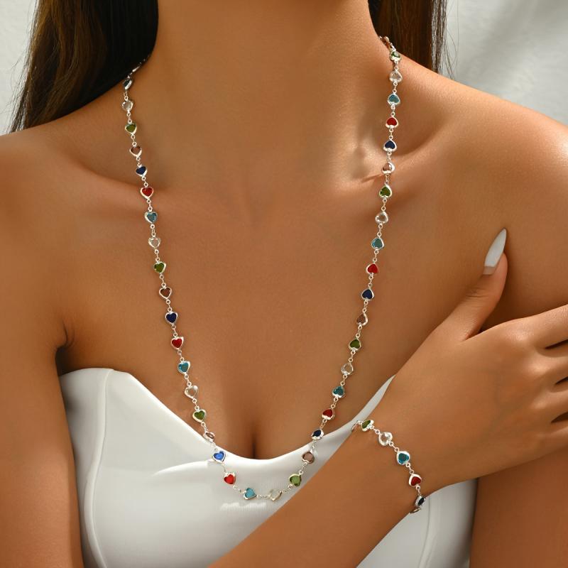 Elegant light-colored heart edged jewelry set suitable for daily wear, vacations, or parties.