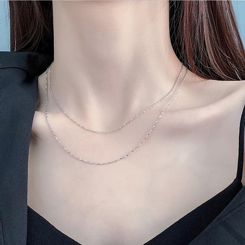 This elegant silvery chain necklace is a versatile accessory that makes a perfect gift for birthdays, anniversaries, and Christmas.