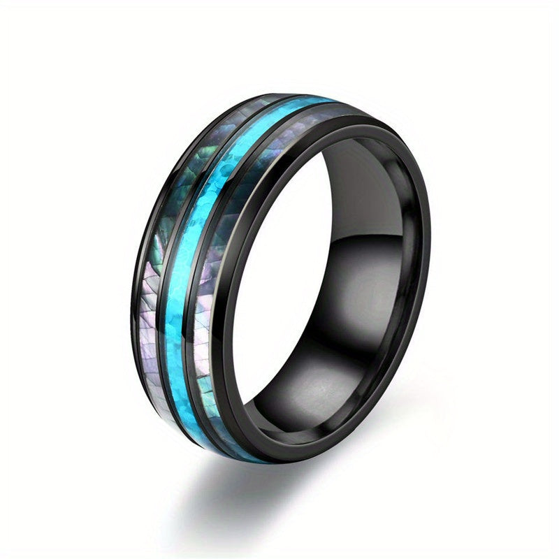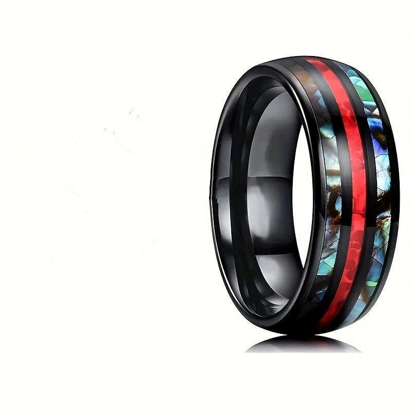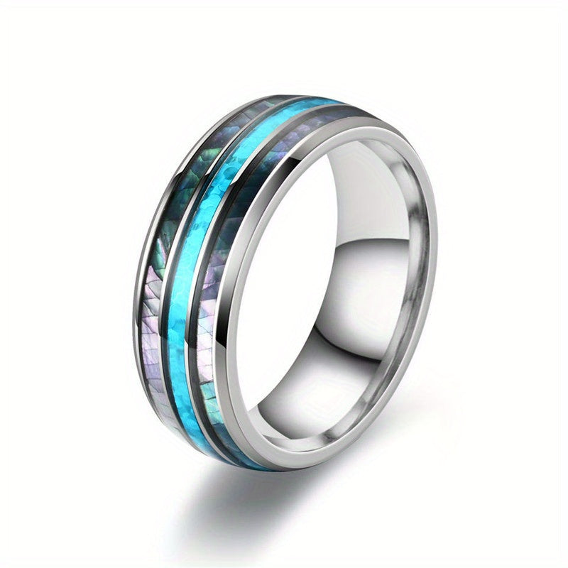 This wide stainless steel band ring features colorful belts on the surface, making it a versatile accessory that can match various daily outfit styles.