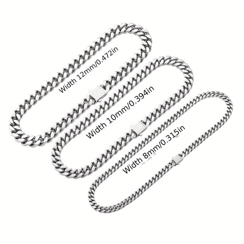 This glossy titanium steel chain necklace is a durable and non-fading accessory that's perfect for everyday wear. Choose from 8, 10, or 12mm chain thickness.