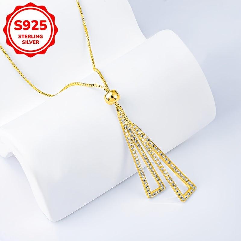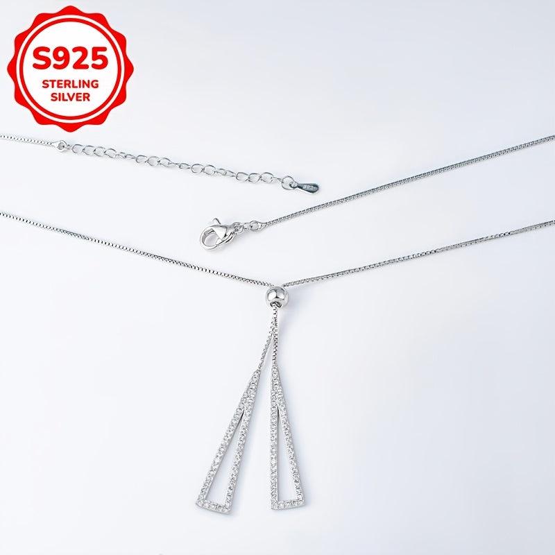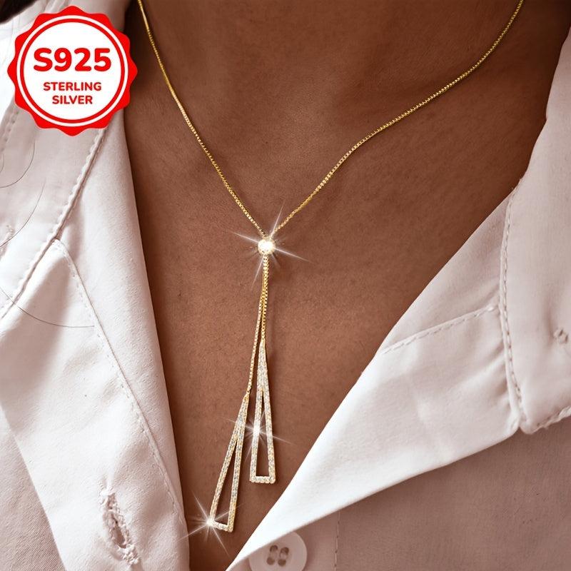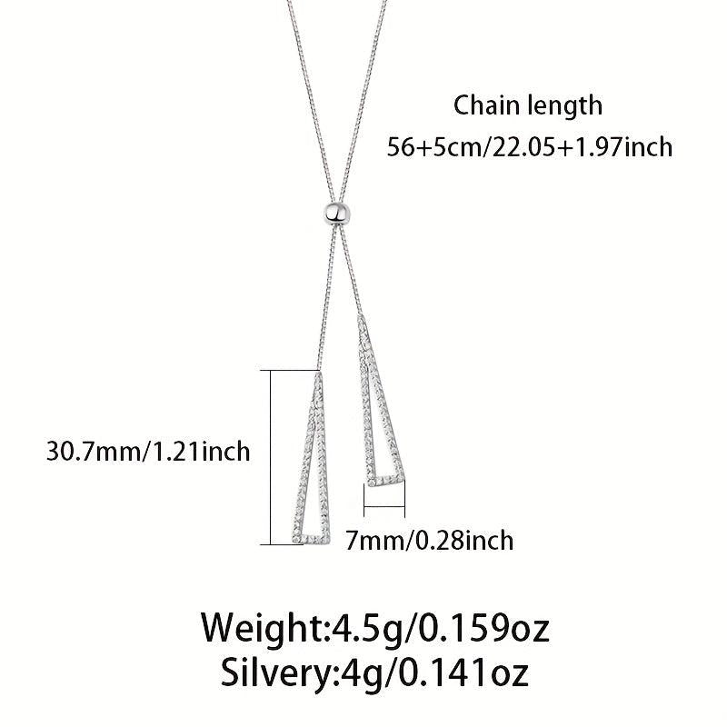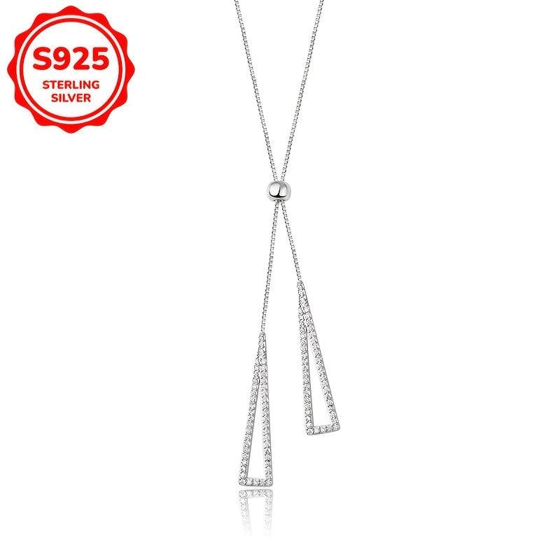 This Y shaped necklace has a trendy vibe with a synthetic zirconia triangle pull. Made from 925 Silver, it is adjustable to suit your style.