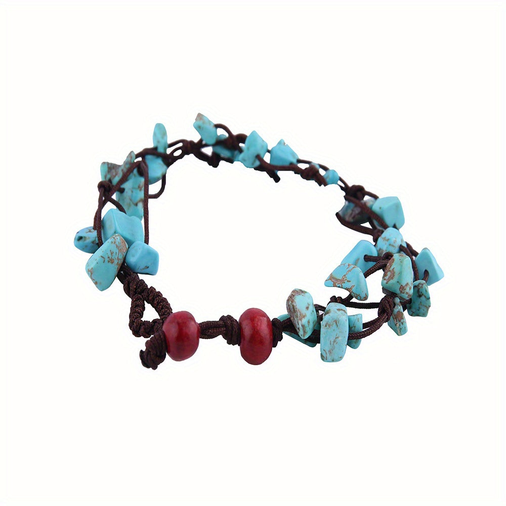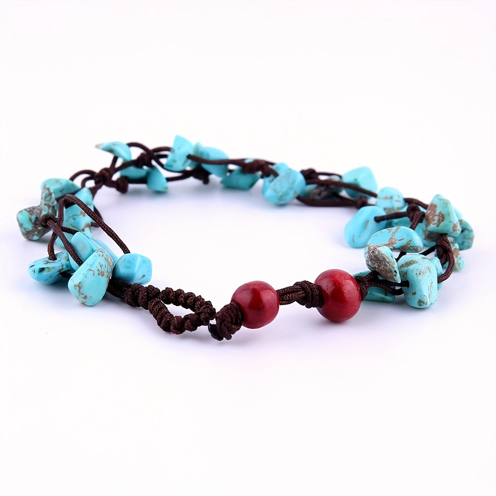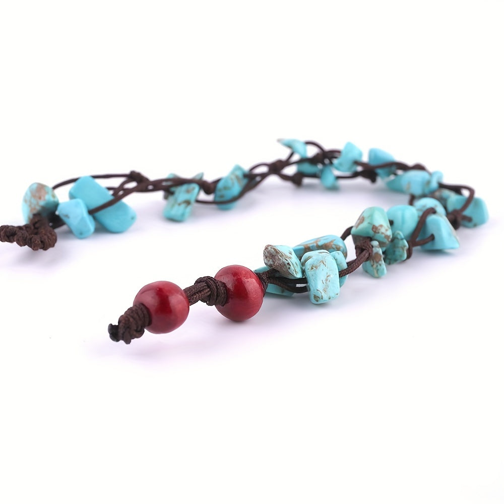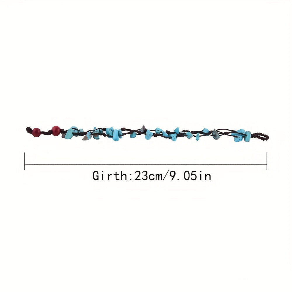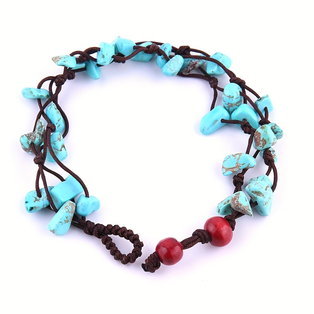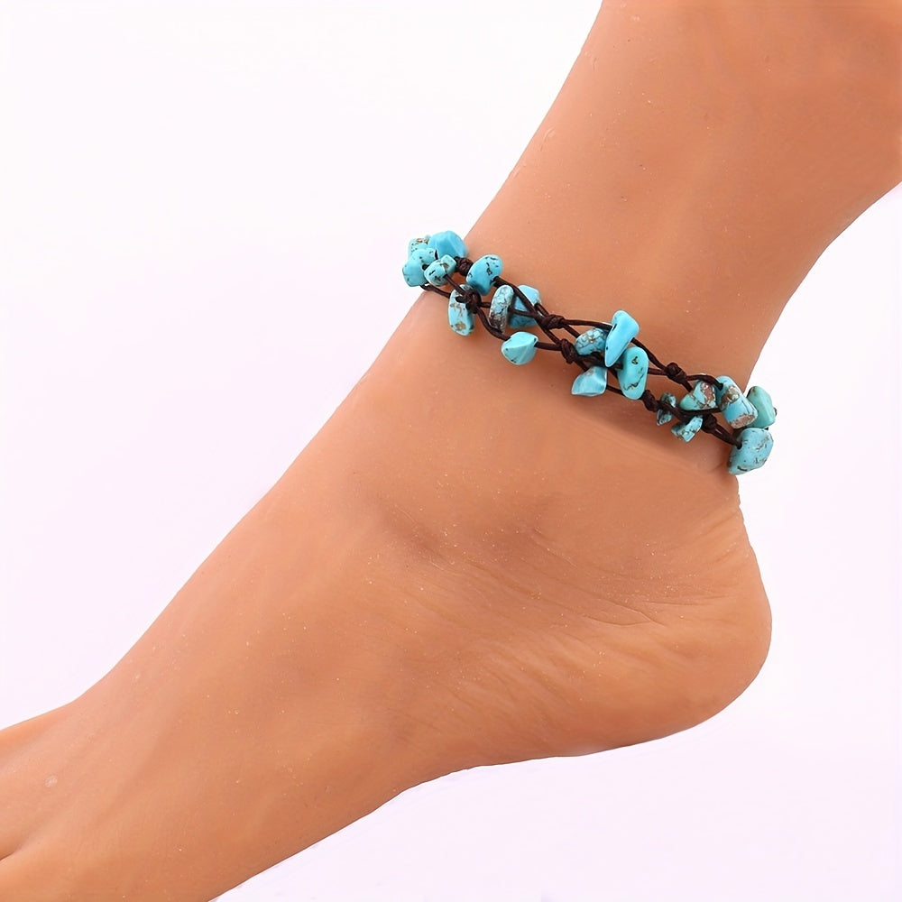Get that ocean vibe with this stylish anklet featuring irregular crushed turquoise stones on a waterproof PU leather band.