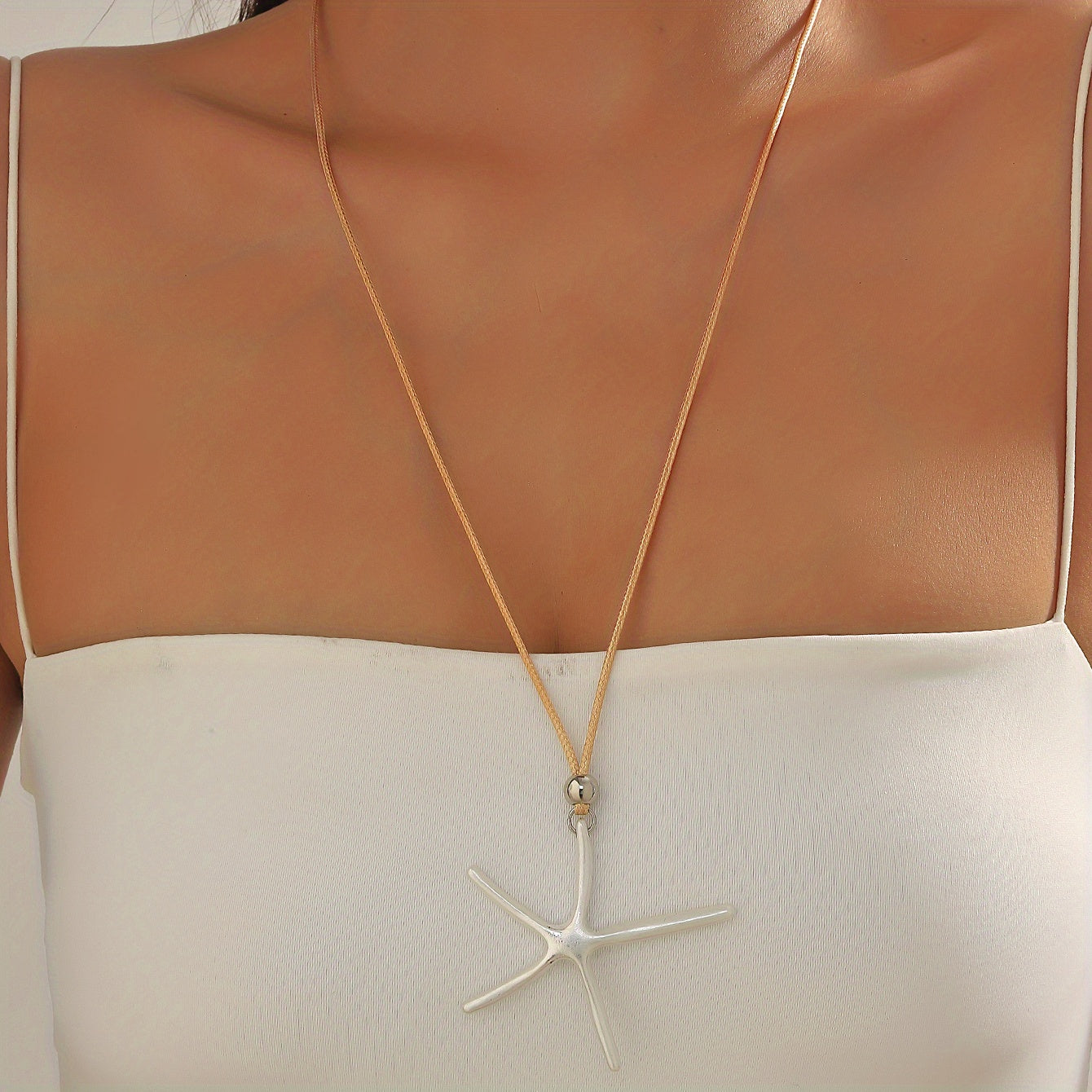 Enhance your beach look with this stunning starfish pendant necklace. Perfect accessory for vacation or holiday relaxation.