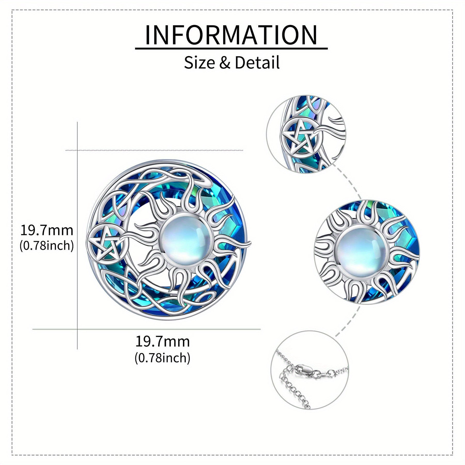 • Features intricate moon pendant and radiant sun design