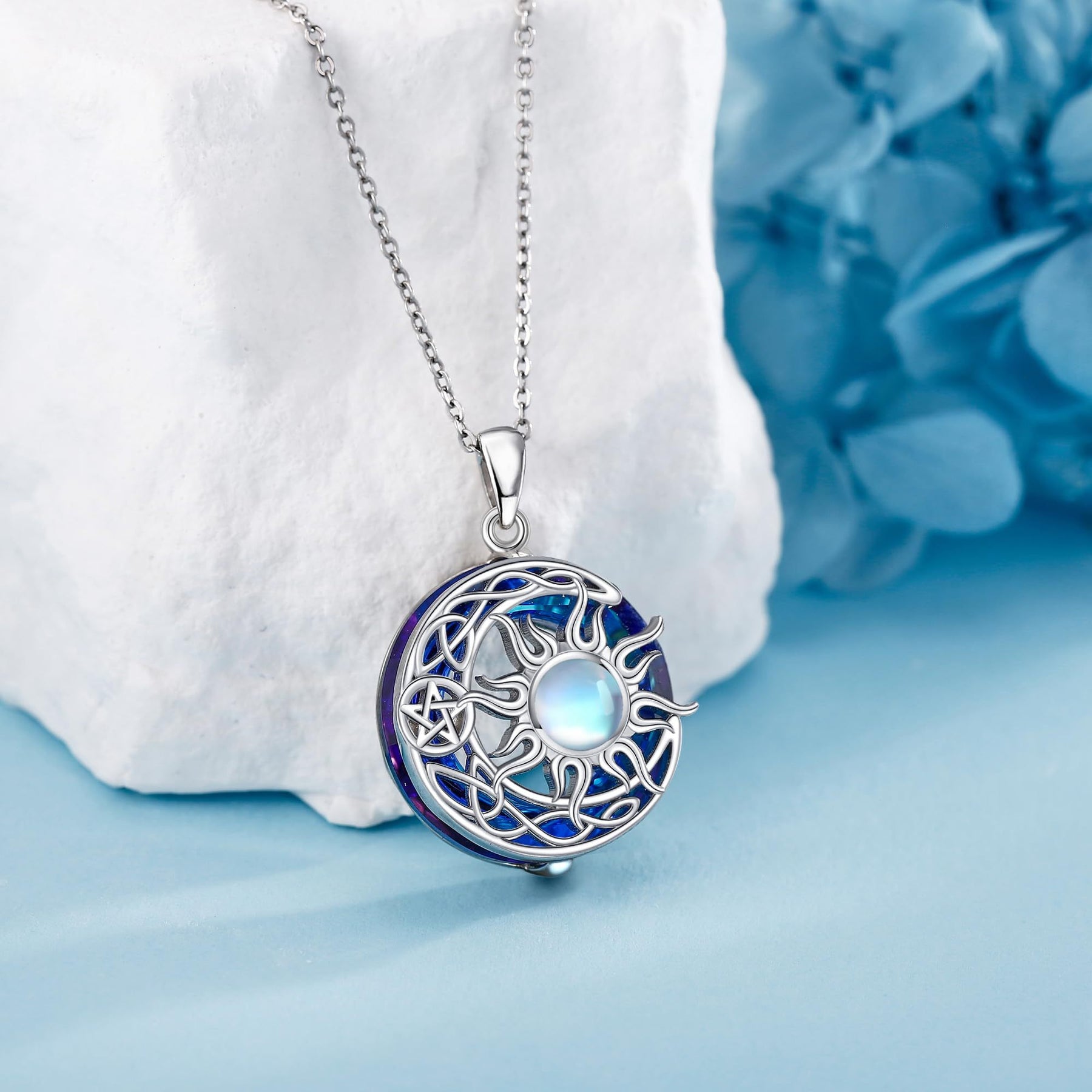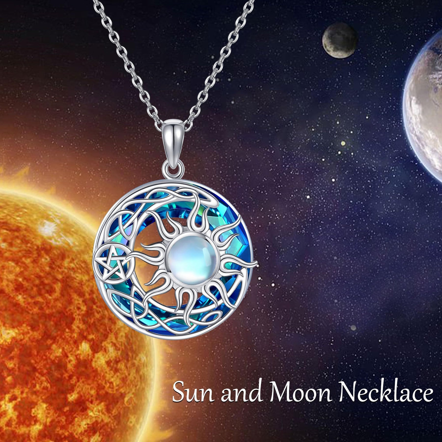 Sun Moon Necklace 925 Sterling Silver Pendant Sun Moon Jewelry Gift Women