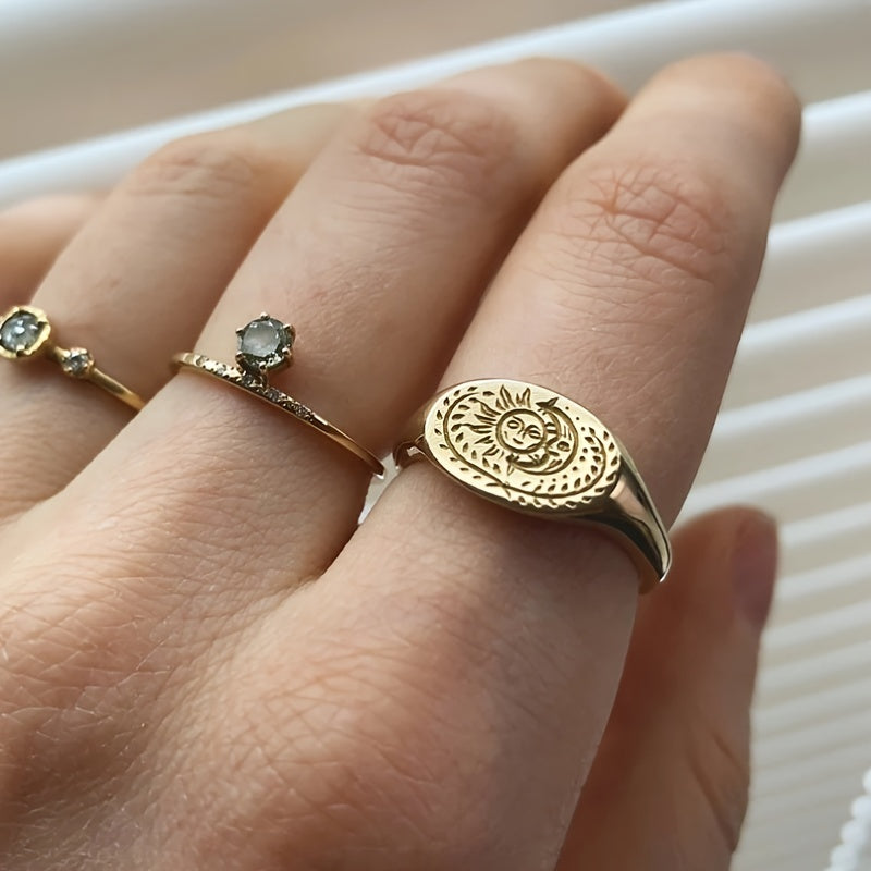 Sun & Moon Shape Pattern Finger Ring Personalized Jewelry