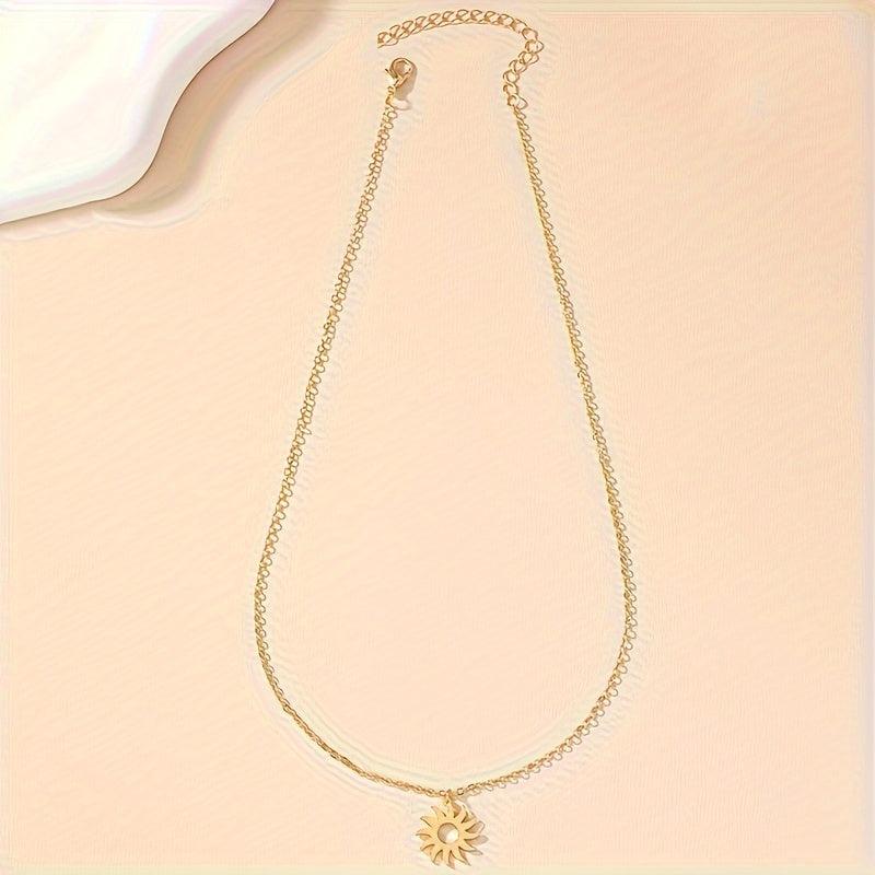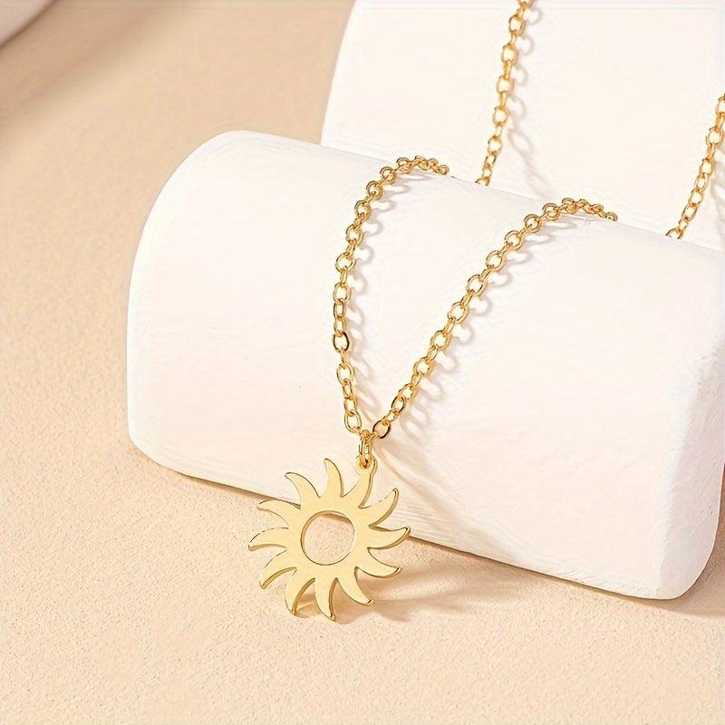 This women's necklace features a creative sun pendant on a delicate chain. Made of alloy with no plating, it is unisex and suitable for all season daily wear.