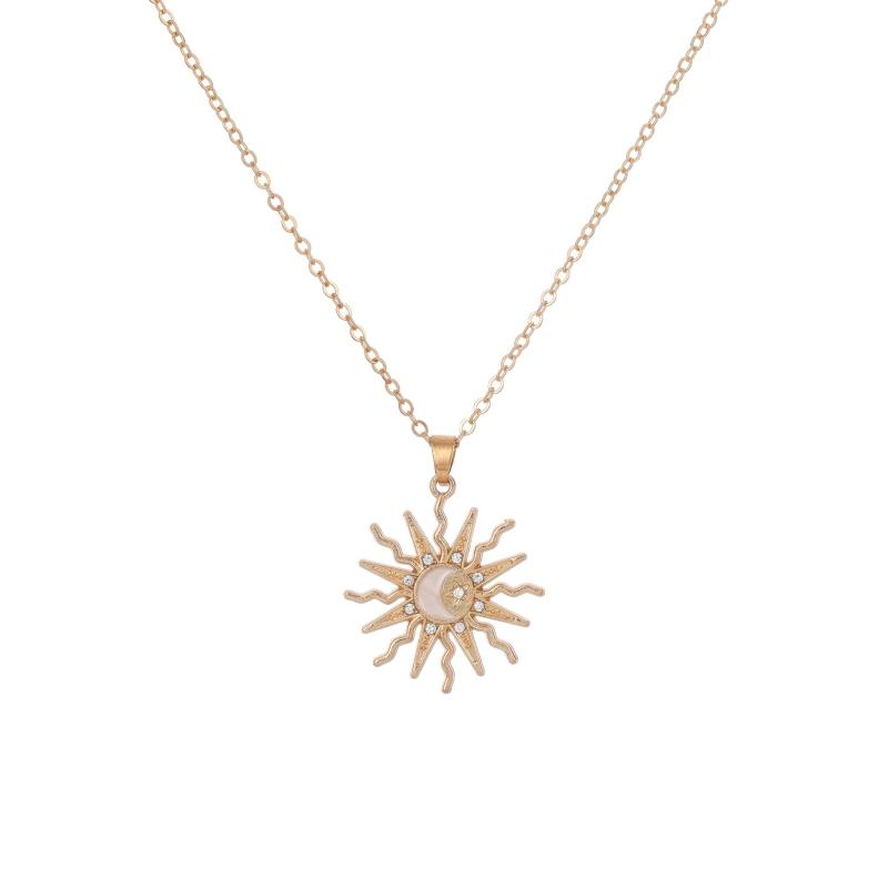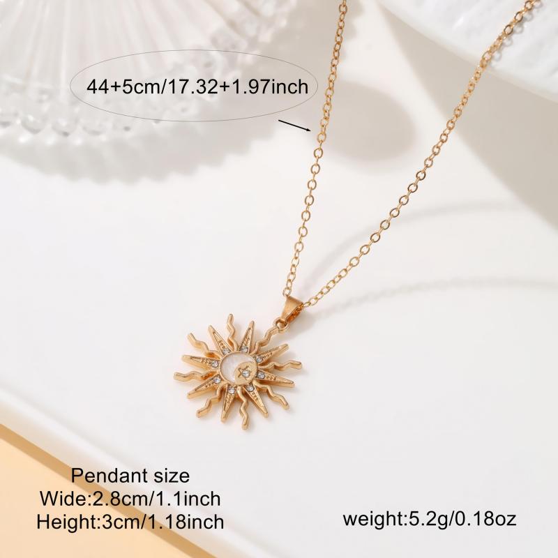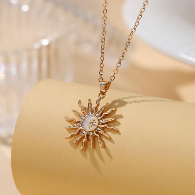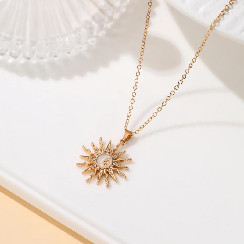 This elegant pendant necklace features a sunburst design with sparkling rhinestones. Perfect for daily wear or gift giving occasions.