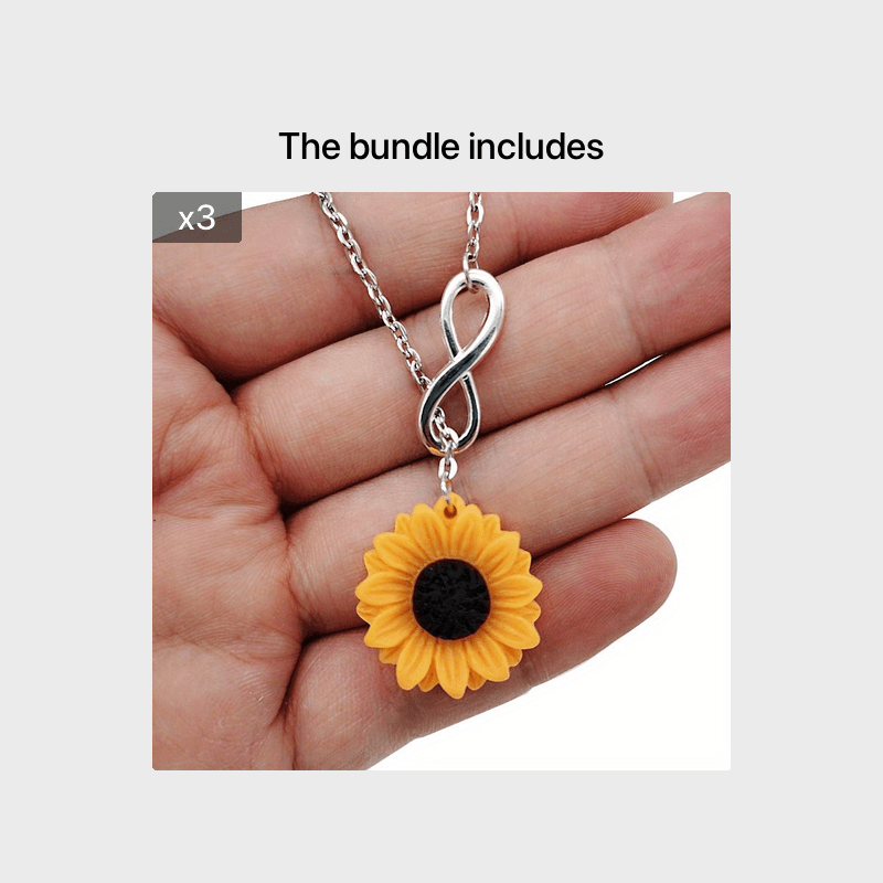 Sunflower Heart Lariat Necklace Infinity Charm Bridal Flower Bridesmaid Daisy