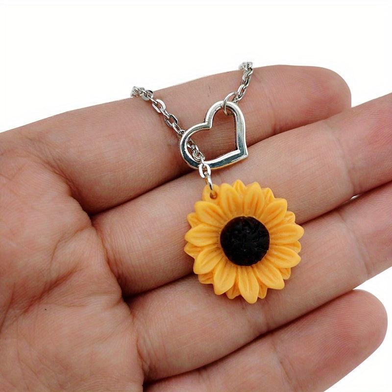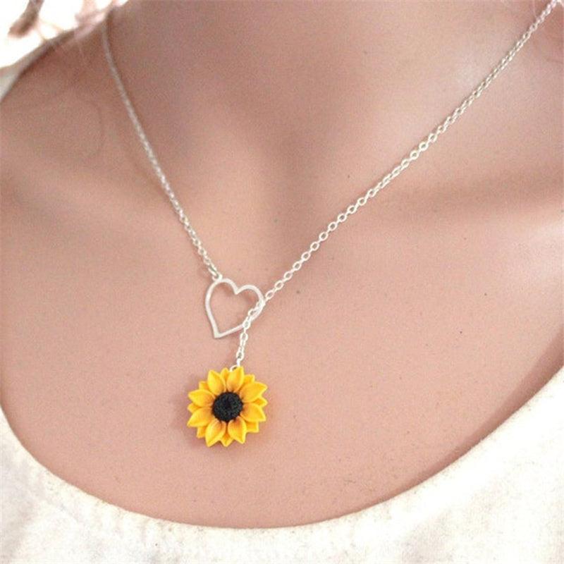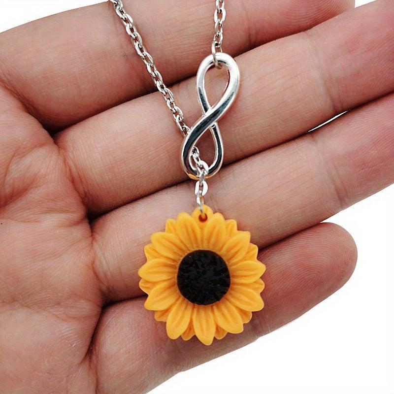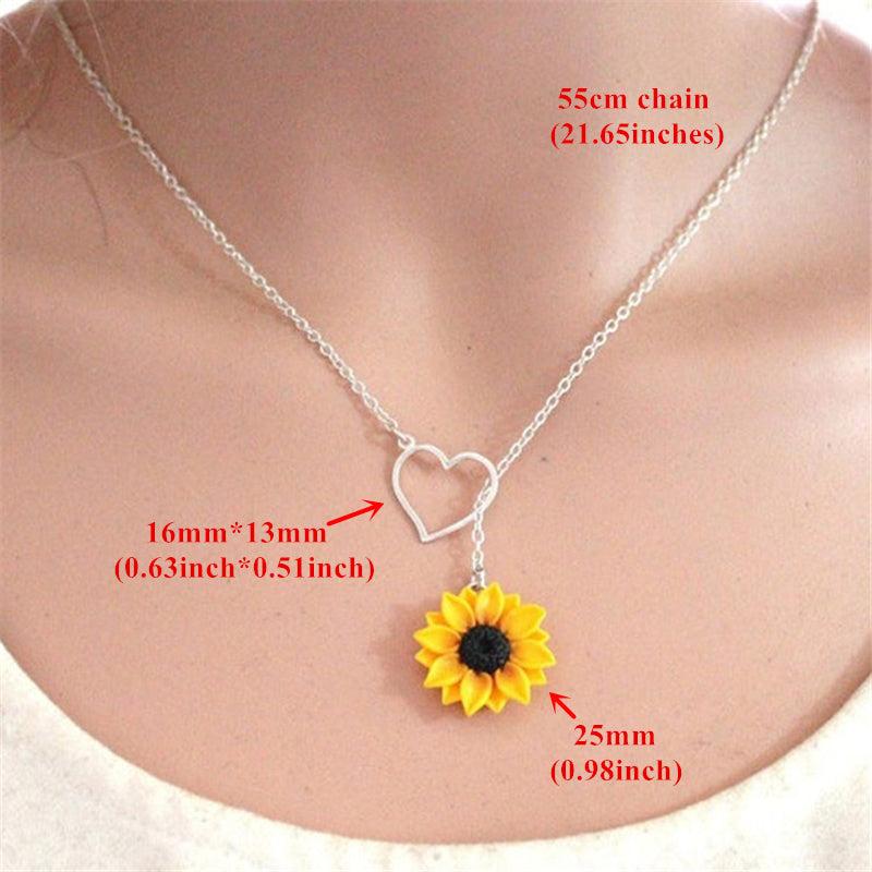 This stunning lariat necklace features a yellow sunflower heart design with an infinity charm. Perfect for weddings and bridesmaids, this necklace adds a touch of elegance and charm to any outfit.
