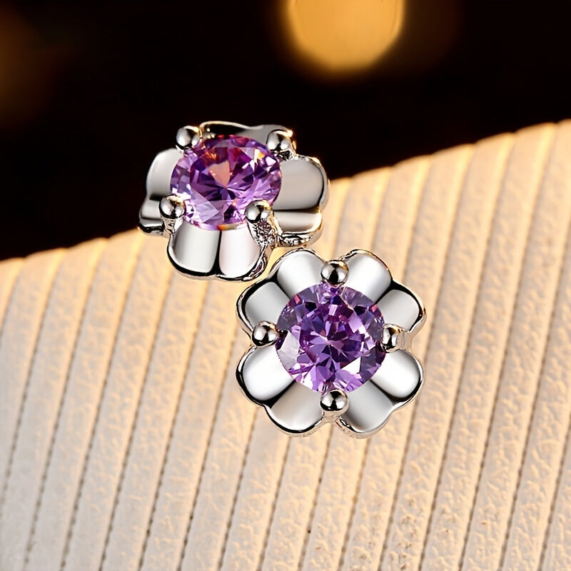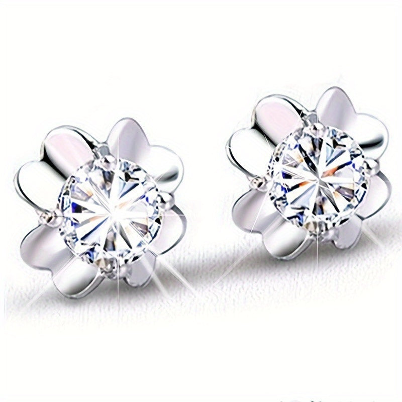 Add a touch of elegance with these charming four leaf clover flower stud earrings featuring zircon crystals. Perfect for weddings, banquets, and engagements.