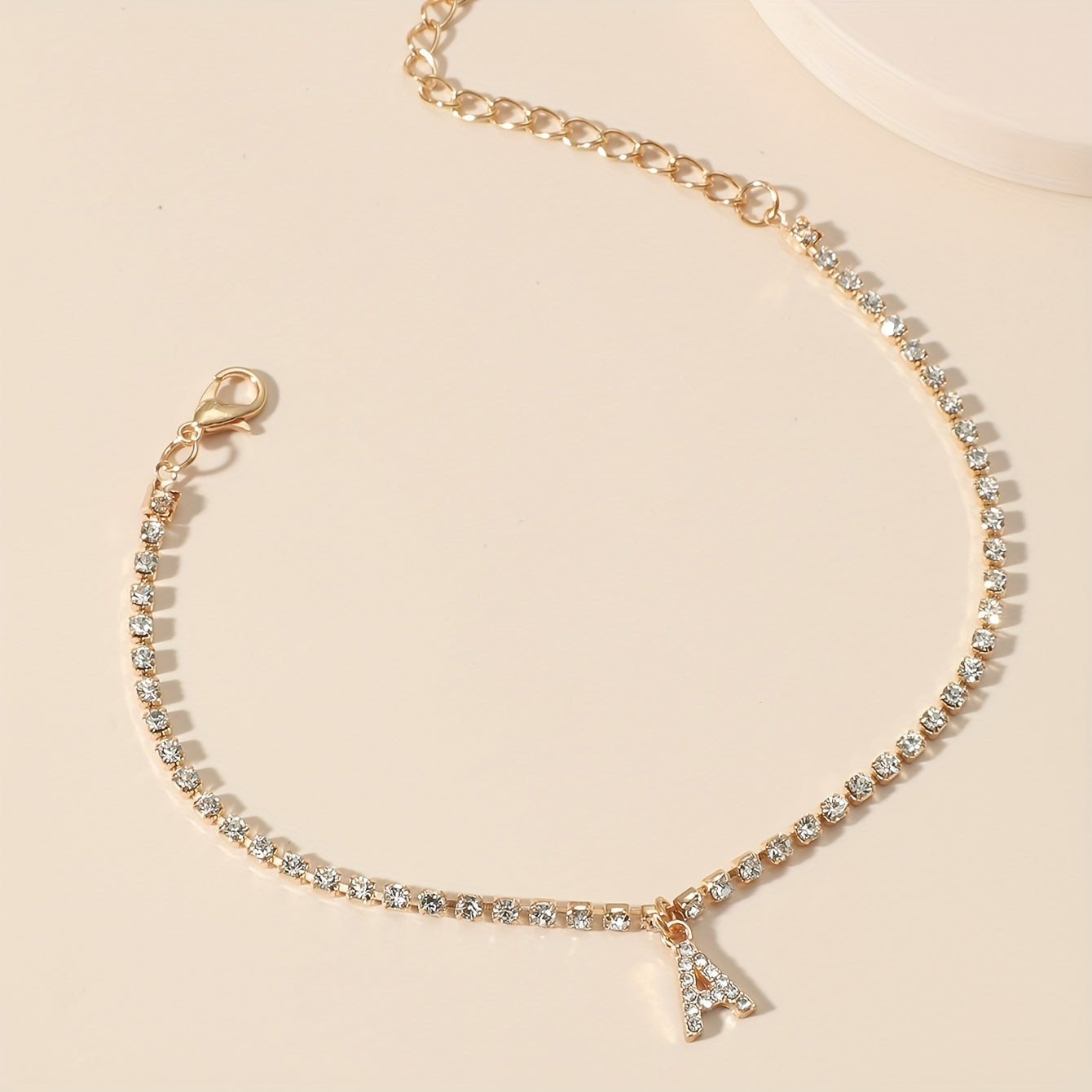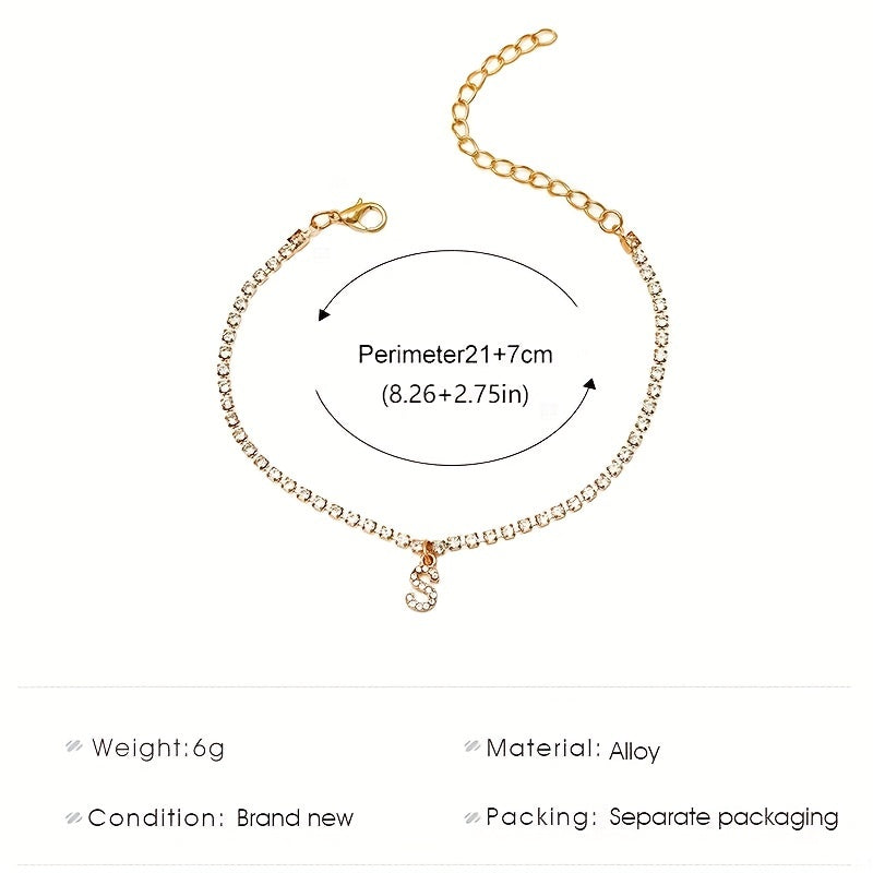 Add a touch of glamour with this T letter shape pendant chain anklet featuring inlaid rhinestones. Perfect for women and girls who love hip hop jewelry.